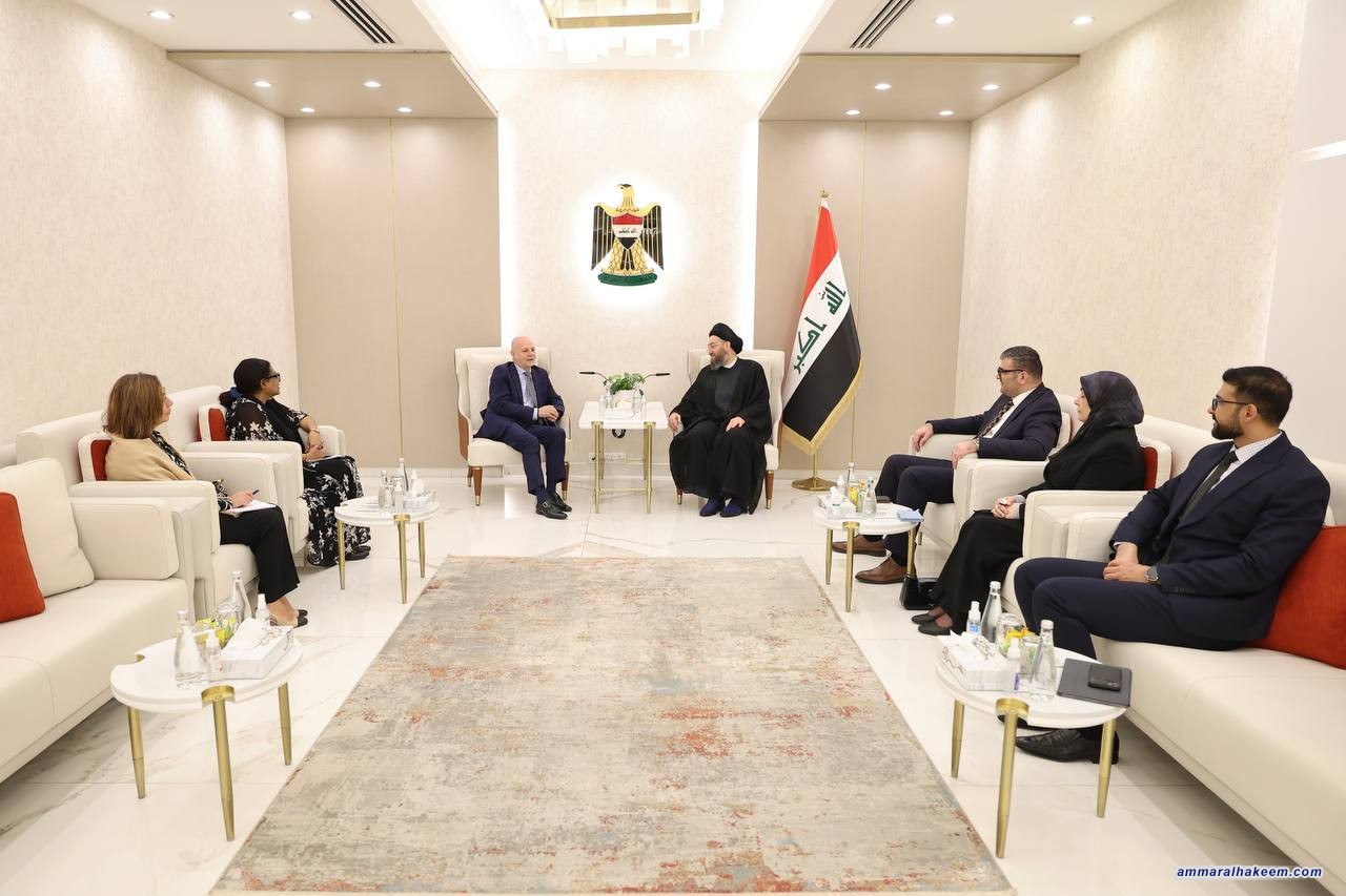 إلتقى ألسيد عمار الحكيم رئيس تحالف قوى الدولة الوطنية نائب ممثل الأمين العام للأمم المتحدة في العراق السيد كلاوديو كوردوني، وتداول معه في تطورات المشهد السياسي فضلا عن المؤتمرات والفعاليات التي تخص ملفات حقوق الانسان والمرأة والطفل، حيث بيّن سماحته أهمية النشاط المجتمعي لرعاية هذه الشرائح وأن لا يقتصر الاهتمام على الجهود الحكومية والمؤسساتية.