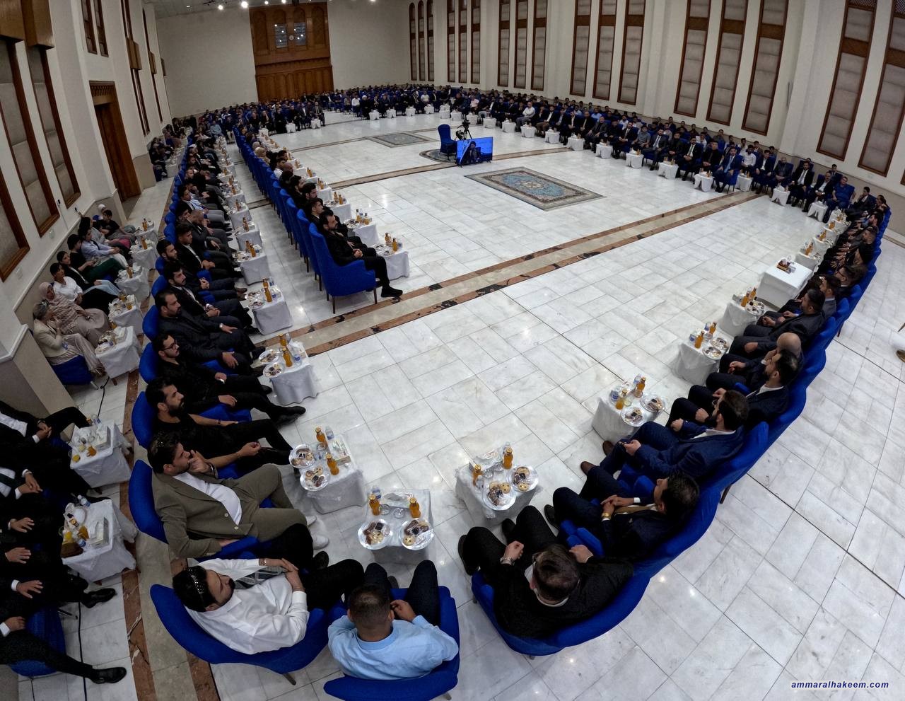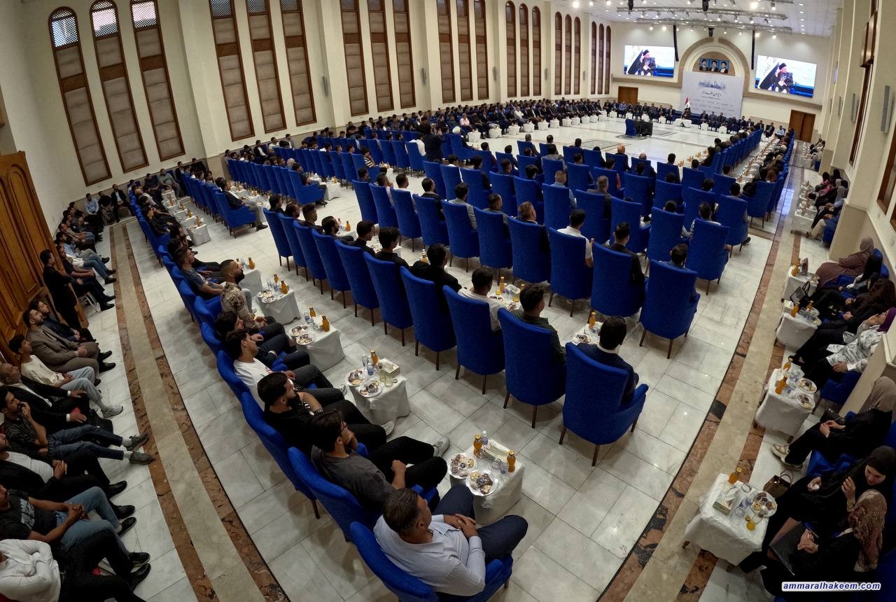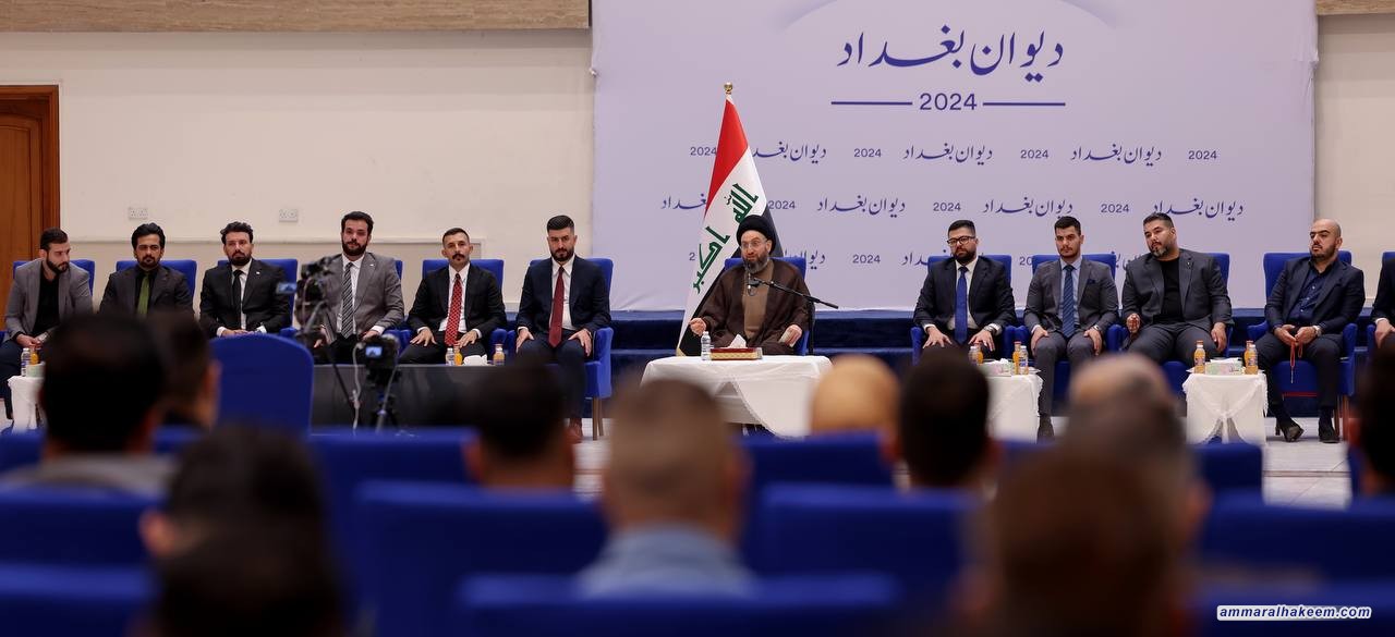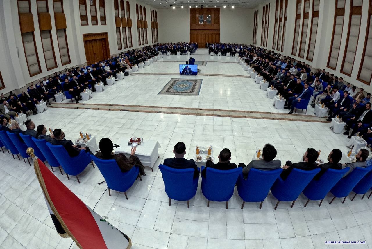سماحته دعا إلى صياغة القوانين بالتعاون مع الجهات القطاعية المعنية بالملف، وأهمية استضافة خبراء من ذات الشريحة حكوميا وأكاديميا وقطاعيا، وقال أيضا إن الانتخابات المبكرة تحتاج لإرادة سياسية وإمكانية فنية وهذا غير متحقق في الوقت الحالي، مبينا أن تيار الحكمة صار أيقونة وقصة نجاح بما يتعلق بتمكين الشباب منذ انبثاقه، مجددا الدعوة لمواءمة المعادلة بين طبيعة الشعب العراقي وممثليه تشريعيا وتنفيذيا، داعيا لتقديم صور نجاح عن الشباب وللتكامل الجيلي، مؤكدا أهمية العمل السياسي بما يتناسب مع طبيعة النظام السياسي العراقي، وأهمية استقرار المنطقة لاستقرار بلدانها.
