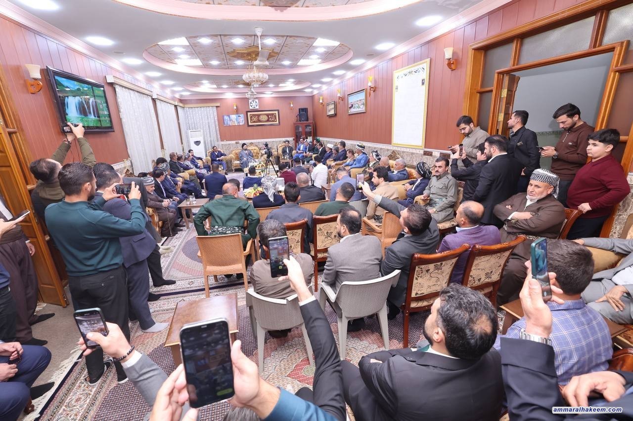 التقى السيد عمار الحكيم رئيس تحالف قوى الدولة الوطنية جمعا من العلماء والشيوخ والوجهاء من قبيلة الميراني الكريمة ومحافظة أربيل في المضيف العامر لجناب الحاج الشيخ فاروق ميراني، وبعد أن شكر لهم المشاعر الطيبة وحسن الاستقبال.