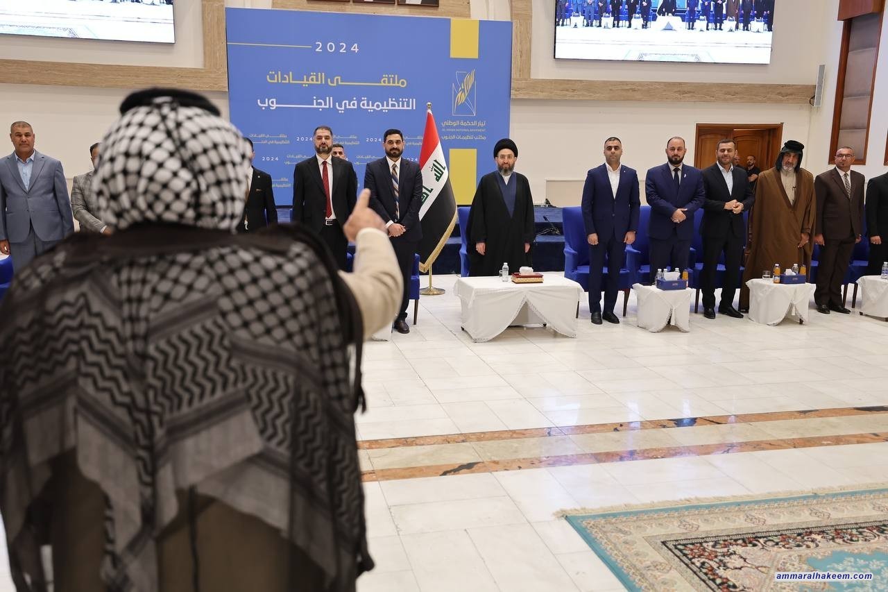 سماحته دعا لرعاية التنظيمات والاهتمام بهم مسؤولية كبيرة، فالتنظيم مصداق لقوة المشروع وهيبته، وللتمكين النوعي للمؤثرين والفاعلين والمخلصين والأكفاء، ومنحهم المسؤوليات والعناوين كل حسب امكانياته، وضرورة التأثير بالآخرين والتعريف بمشروع الحكمة الوطني.