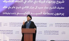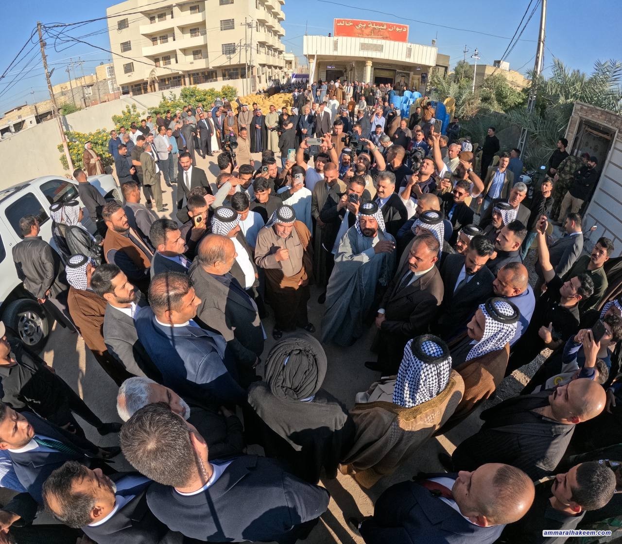 من محافظة النجف الأشرف، وفي مضيف الشيخ عماد حميد آل جزار الخالدي، التقى السيد عمار الحكيم رئيس تحالف قوى الدولة الوطنية جمعا كريما من شيوخ ووجهاء قبيلة بني خالد في النجف الأشرف مشيرا إلى التاريخ الذي يجمعنا بالعشائر منذ مرجعية الإمام السيد محسن الحكيم (قدس سره)، مبينا أهمية التواصل كتعبير عن التقدير لهذه العلاقة وجذورها العميقة.