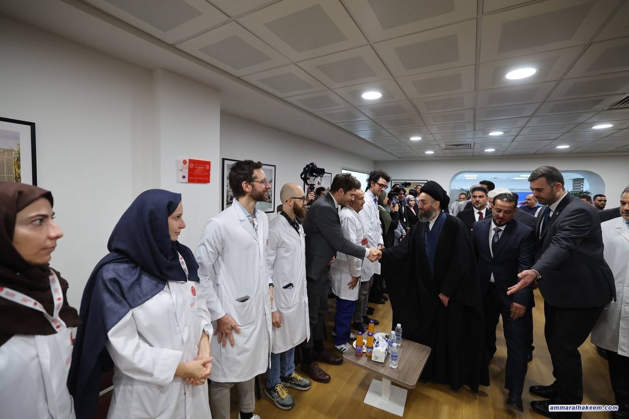 بحضور مدير صحة النجف الأشرف، زار السيد عمار الحكيم رئيس تحالف قوى الدولة الوطنية مستشفى النجف الأشرف التعليمي، وتفقد بعض الراقدين في المستشفى والتقى ملاكات المستشفى من أطباء وممرضين وكادر إداري، وأشاد بالجهود التي تقدمها المستشفى، مبديا سعادته بالواقع الإداري في المستشفى وتوظيف الخبرات الخارجية في ذلك، متمنيا من الشركة الإيطالية القائمة على إدارة المستشفى إنجاح هذه التجربة وتوسيعها لباقي المستشفيات، وقال سماحته إن الخبرات الفنية موجودة، لكنها تحتاج إلى منظومات إدارية ساندة للخدمة الطبية مؤكدا أهمية الخدمة الطبية باعتبارها جزءاً مهماً من احتياجات المواطن اليومية، وبيّنا أهمية تجربة الإدارة مع شركات أجنبية، وضرورة رفع سقف الطموح، وأن تكون مستشفيات العراق بموازاة المستشفيات في دول المنطقة والعالم، متمنيا أن يكون القطاع الصحي واعداً ومتطوراً في تقديم الخدمات، كما أشاد بالواقع الصحي في النجف الأشرف؛ مما جعلها قبلة لباقي المحافظات.