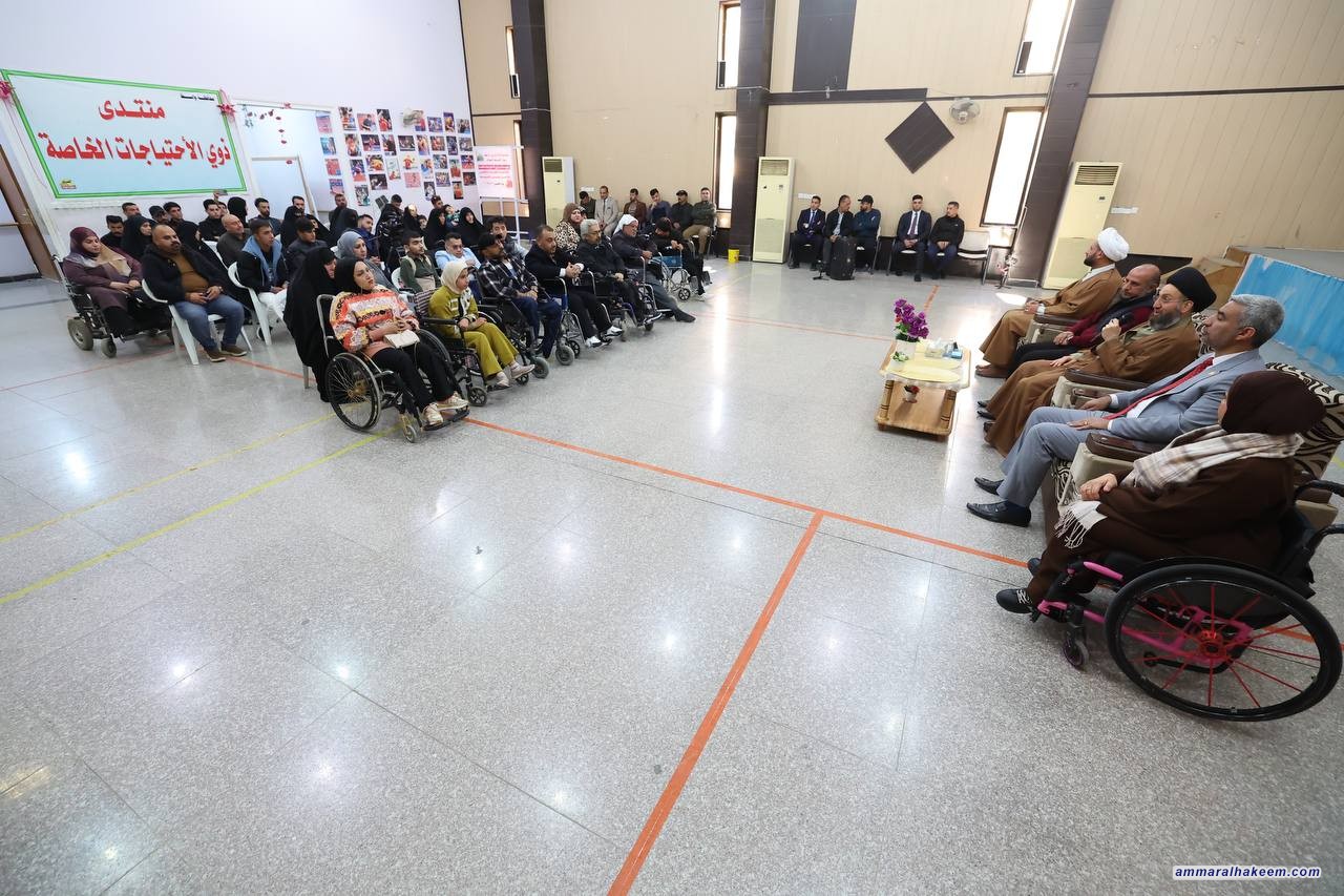 سماحته دعا لدعم حكومي وتسهيلات للأشخاص ذوي الإعاقة، فضلا عن دعم المراكز التخصصية وتوفير الفرص والامكانات اللازمة لتفجير طاقاتهم الإبداعية، مبينا أن زيارته لهذا المنتدى هو تعبير عن الاهتمام بهذه الشريحة