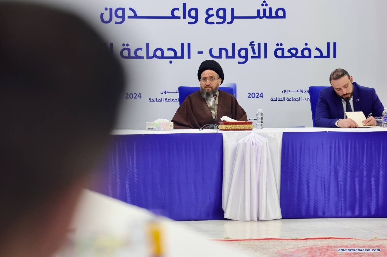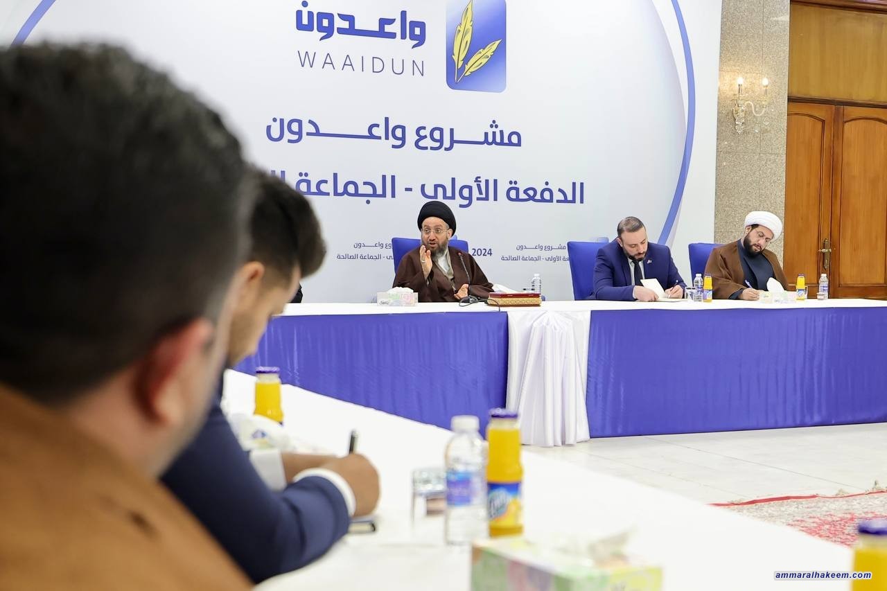 التقى السيد عمار الحكيم رئيس تيار الحكمة الوطني الدفعة الأولى لمشروع واعدون، وقال سماحته "إن الإنسان هو محور المشروع الإلهي، وأن الجهد والعمل المتواصل سبب في نجاح المشاريع ومباركتها" مؤكدا أن مشروع الرسالة السماوية بدأ بعبارة "قولوا لا إله إلا الله تفلحوا"، أمام مشاريع أخرى امتازت بالإمكانات المادية والبشرية الكبيرة .