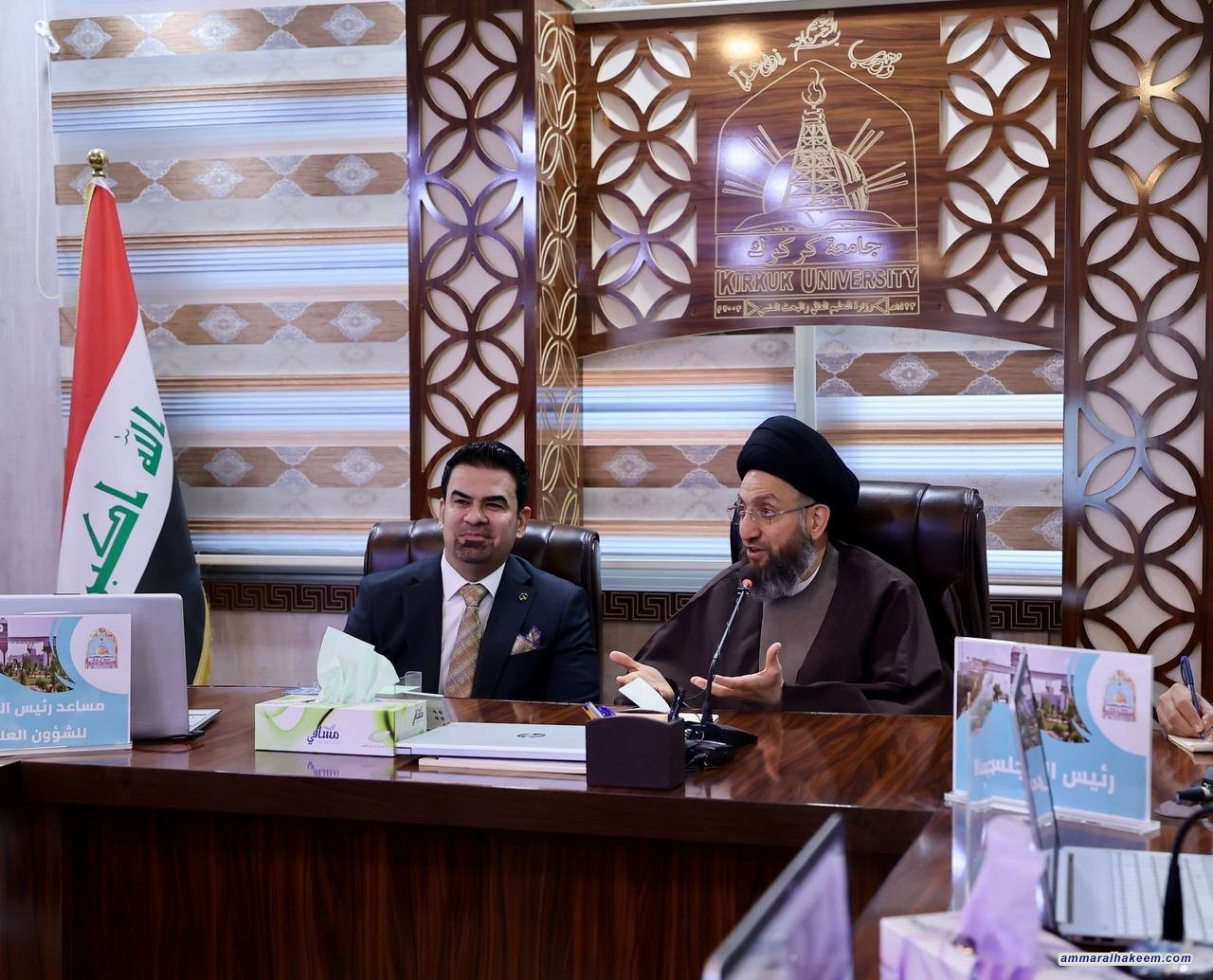 سماحته دعا للتنبه للثقافات والظواهر الاجتماعية في البلاد، مؤكدا أهمية استثمار الجامعات وطلبتها بالتأثير في باقي الشرائح الاجتماعية ومعالجة الإشكالات ثقافيا و سلوكيا، مؤكدا أهمية نشر العلم وحسن تسويقه، والتكامل بين الجامعات سواء الحكومية أو الأهلية، مبديا سعادته للتطور في عمل جامعة كركوك.