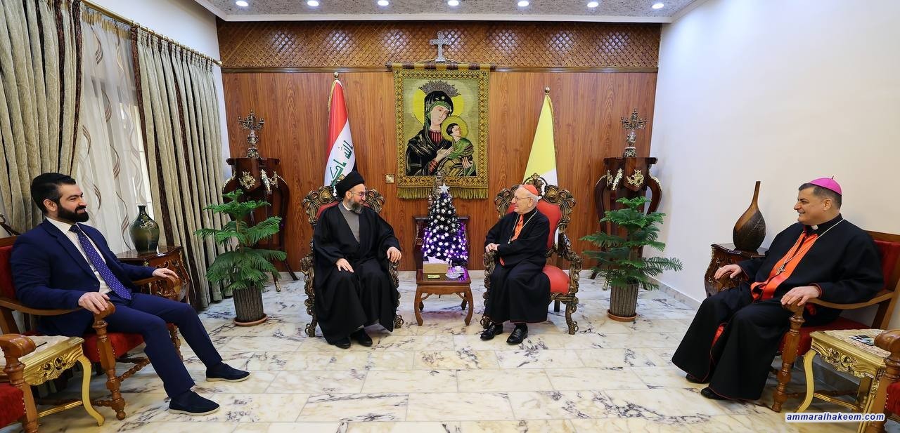 السيد الحكيم يؤكد أهمية تمكين المكون المسيحي ويبحث تطورات الأوضاع الإقليمية مع الكاردينال لويس ساكو