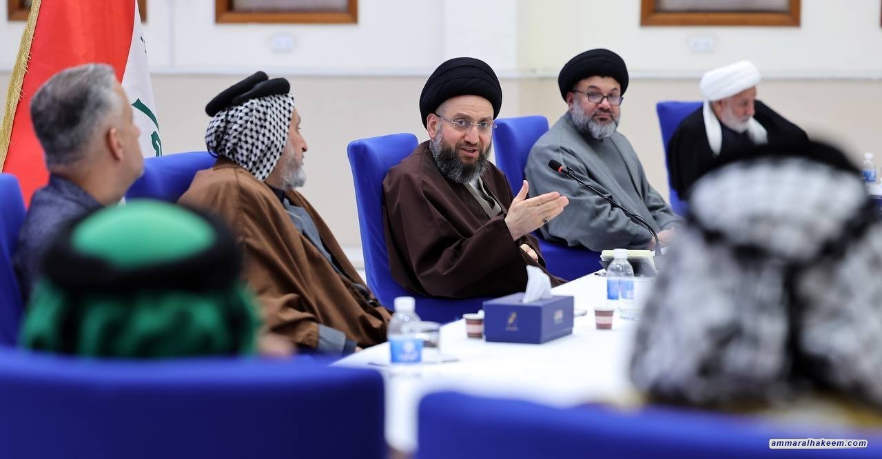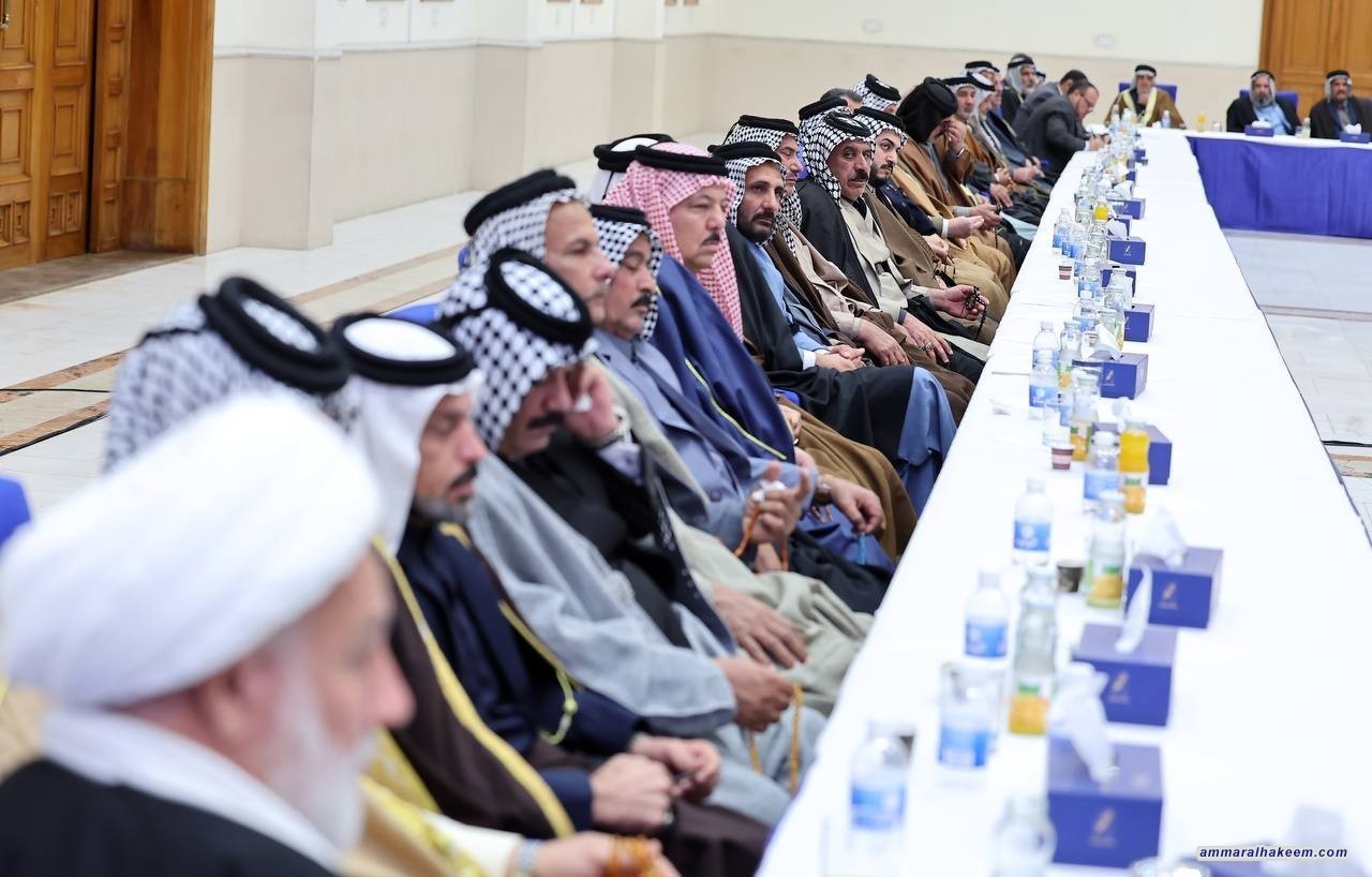 السيد الحكيم لدى لقائه جمعا من الشيوخ والوجهاء من مكتب شؤون العشائر: أهمية تعزيز العلاقة مع العشائر ودور مشروع الحكمة الوطني في تعزيز الاستقرار
