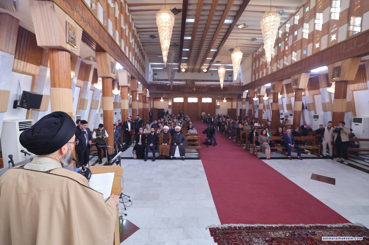 وأكد السيد الحكيم في كلمته أن "الإسلام أولى اهتمامًا كبيرًا بالسيد المسيح والسيدة مريم (عليهما السلام)، ما يعكس عمق العلاقة والترابط المشترك بين الإسلام والمسيحية"، مشيرًا إلى أن "المسيحية جزء أساسي في حركة الرسالات السماوية".