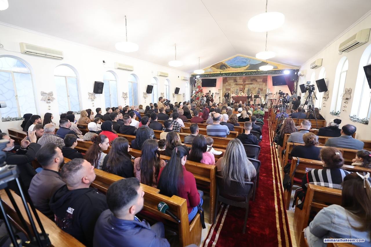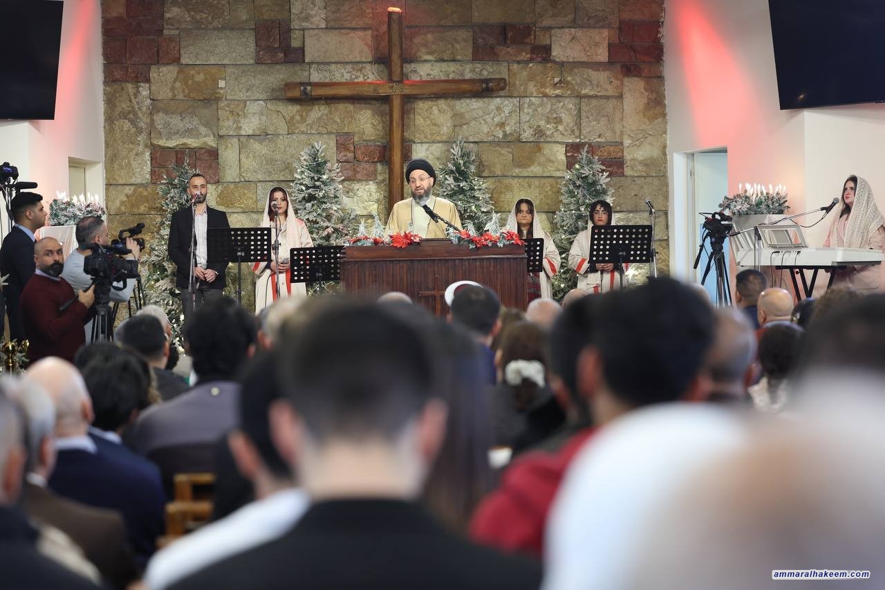 من كنيسة الاتحاد المسيحي الإنجيلية، جدد السيد عمار الحكيم، رئيس تحالف قوى الدولة الوطنية، تهنئته للإخوة المسيحيين بمناسبة ذكرى ميلاد السيد المسيح (عليه وعلى نبينا وآله الصلاة والسلام)، مؤكدا أن "الديانات السماوية تنتمي إلى الله ونحن أيضًا ننتمي إلى العراق، وتجمعنا الهوية الوطنية التي تضم جميع العراقيين".
