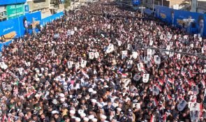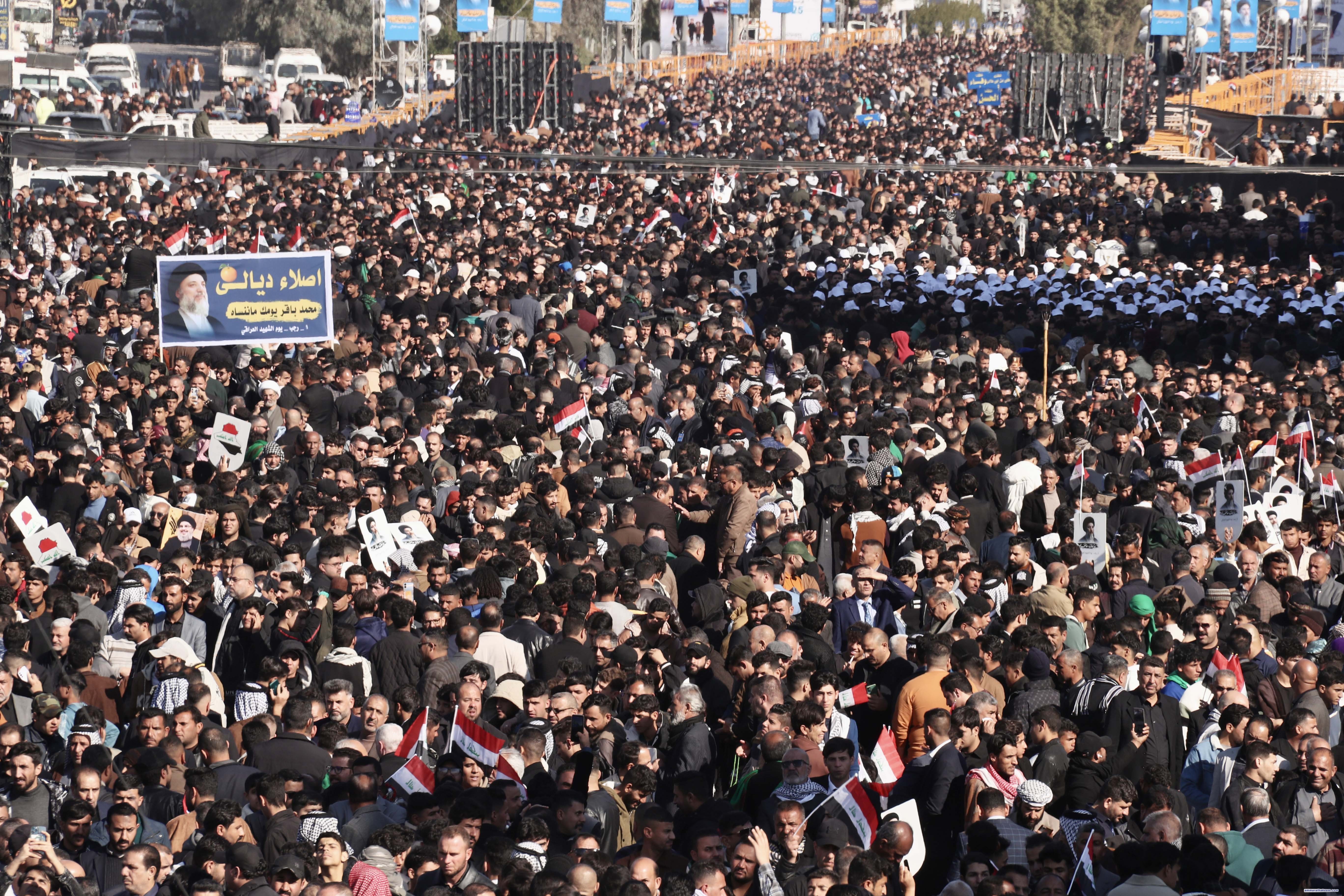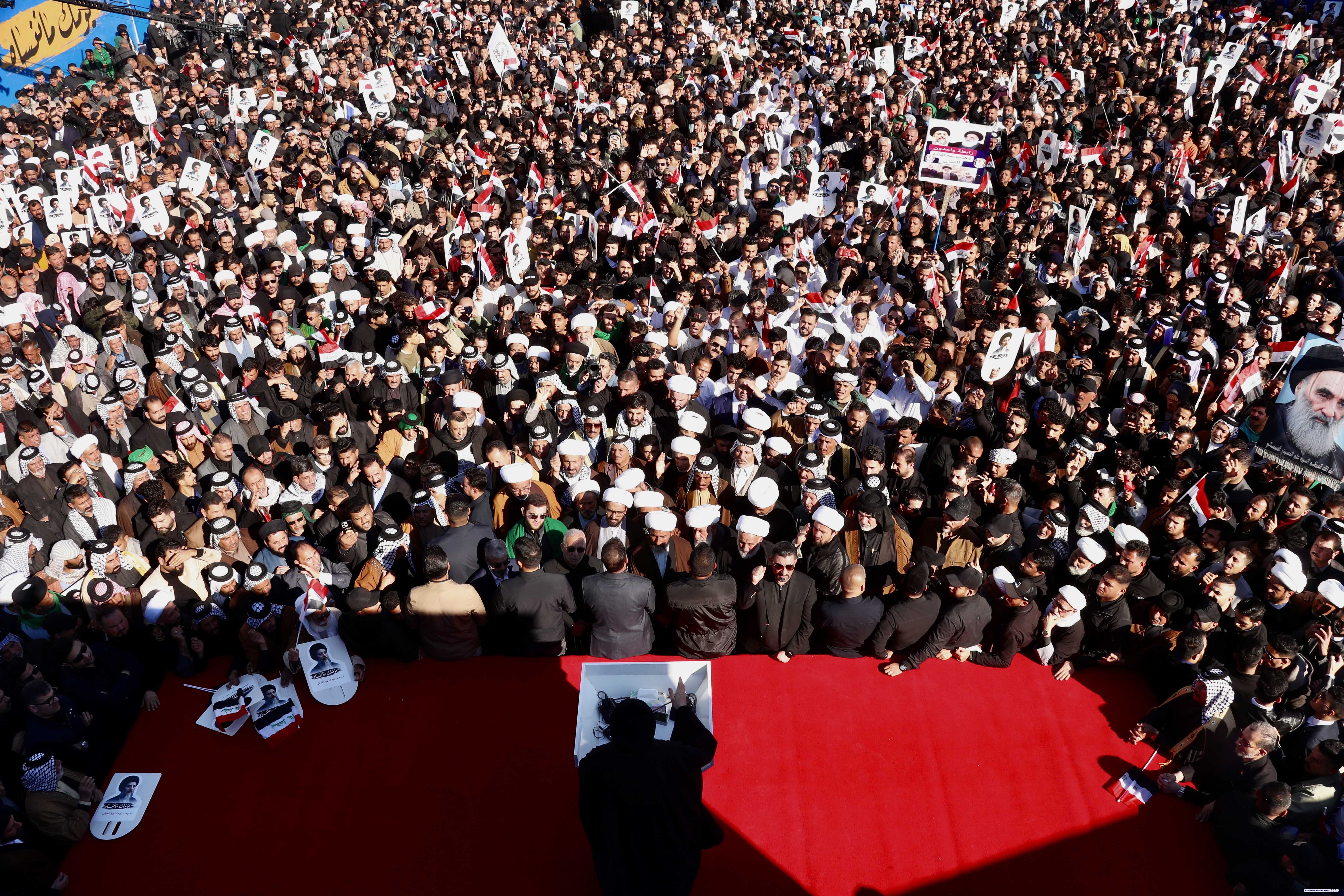 إن تجمعنا الحاشد الیوم .. واحیاءنا لھذه المناسبة العزيزة على قلوب العراقیین .. تتزامن مع الذكرى السنویة لاستشھاد قادة النصر..و مرور أكثر من أربعة أشھر على استشھاد سيد المقاومة سماحة السید حسن نصر لله (رضوان الله تعالى علیه).