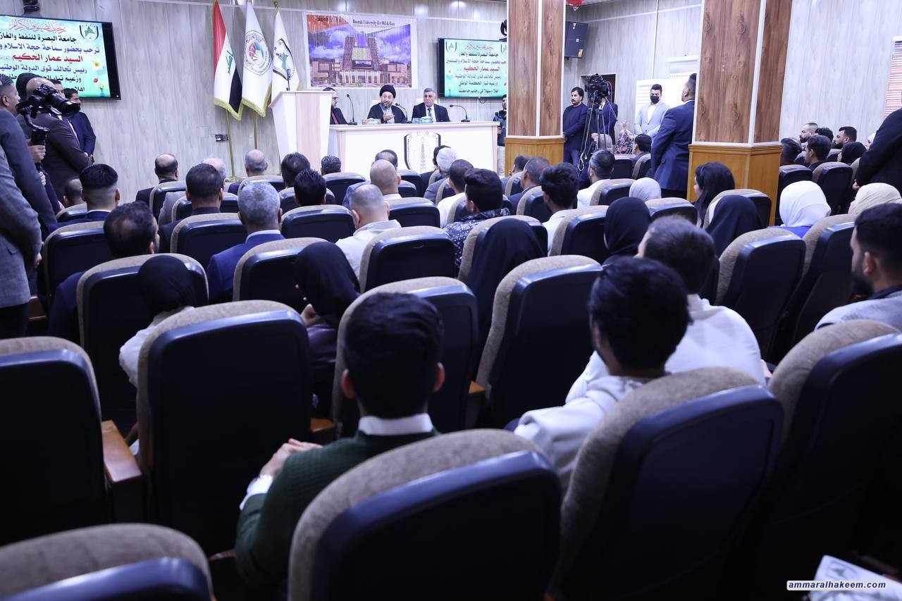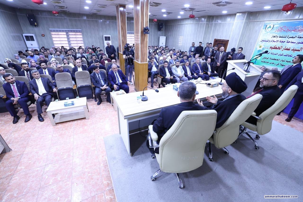 السيد الحكيم يزور جامعة البصرة للنفط والغاز ويؤكد أهمية تطوير القطاع النفطي واستثمار الموارد