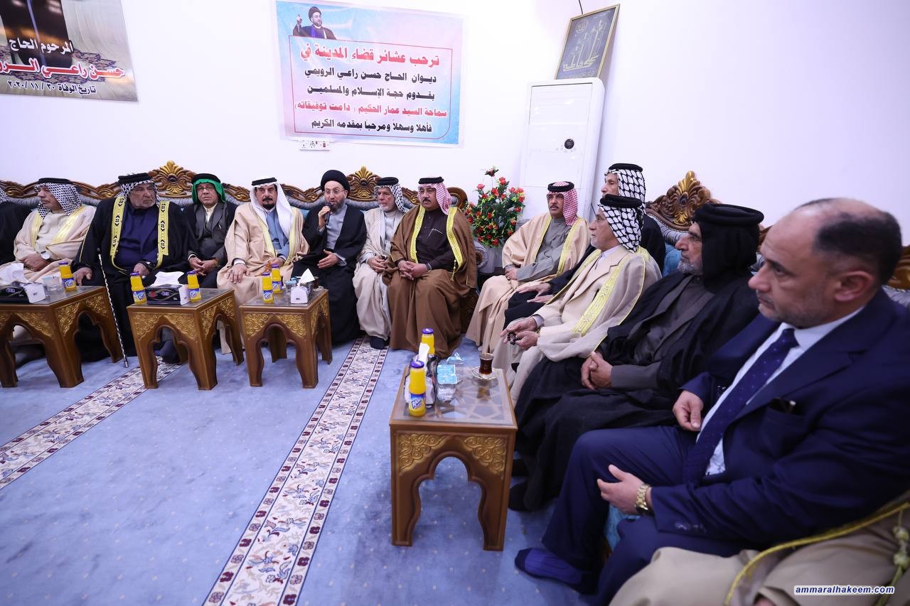 خلال زيارته إلى قضاء المدينة في شمال البصرة، وفي مضيف الشيخ حسن الرويمي، استذكر السيد عمار الحكيم، رئيس تحالف قوى الدولة الوطنية، الولادة الميمونة للإمام المهدي (عجل الله تعالى فرجه الشريف) وذكرى الانتفاضة الشعبانية، مؤكدًا دورها في إسقاط النظام البائد وإرساء معادلة جديدة تحقق الطمأنينة للعراق وشعبه.