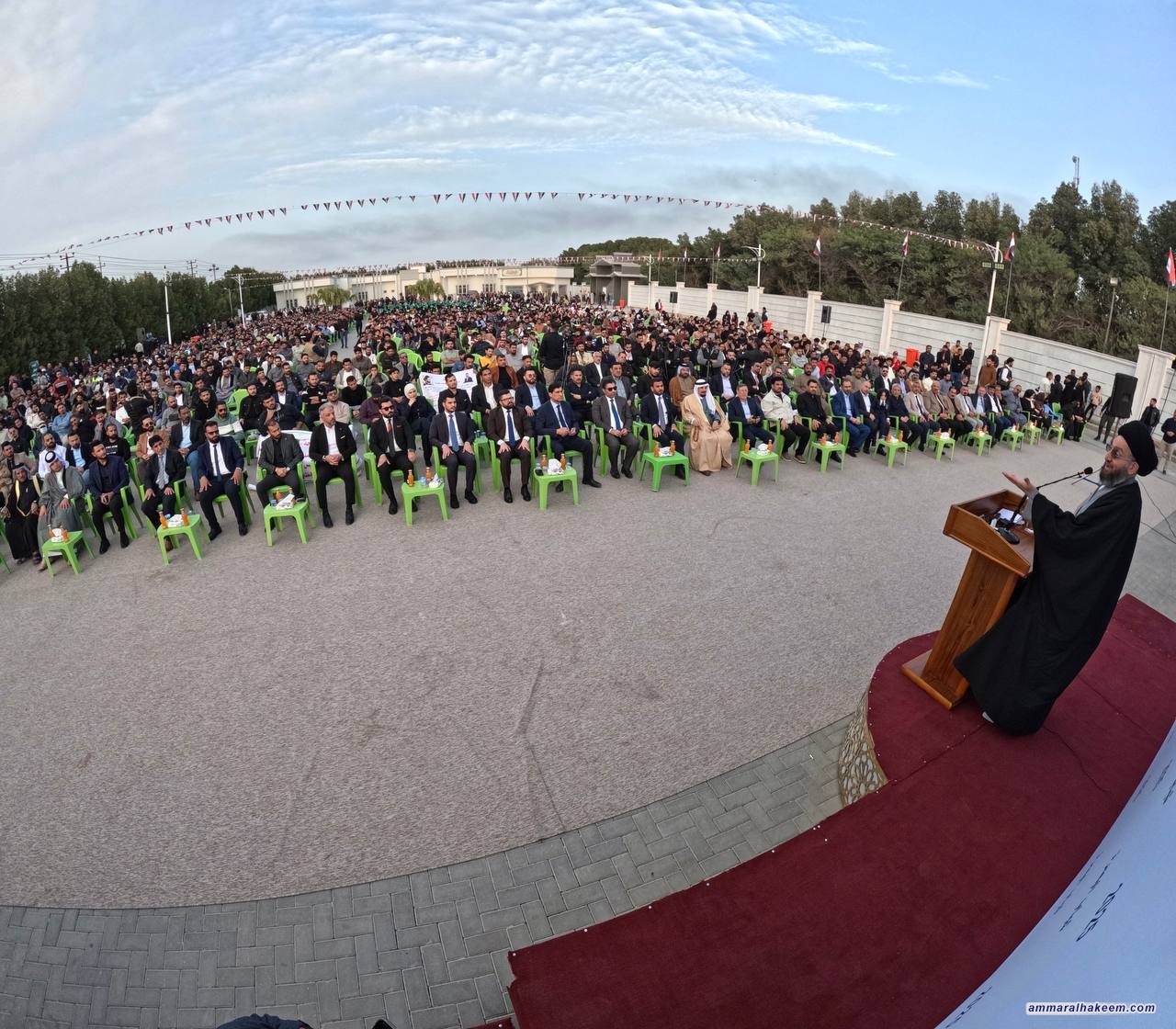 وأكد السيد الحكيم أن تحقيق النتائج الإيجابية يحتاج إلى الصبر، مشددًا على ضرورة تحمل التحديات التي تشمل التشويش وحملات التسقيط التي طالت كل المشاريع الإصلاحية. كما أشار إلى أن ثلثي الشعب العراقي دون سن 24 عامًا، مما يجعل دعم الشباب وتمكينهم أولوية وطنية، داعيًا الشباب إلى أخذ زمام المبادرة والمساهمة الفاعلة في بناء الوطن.