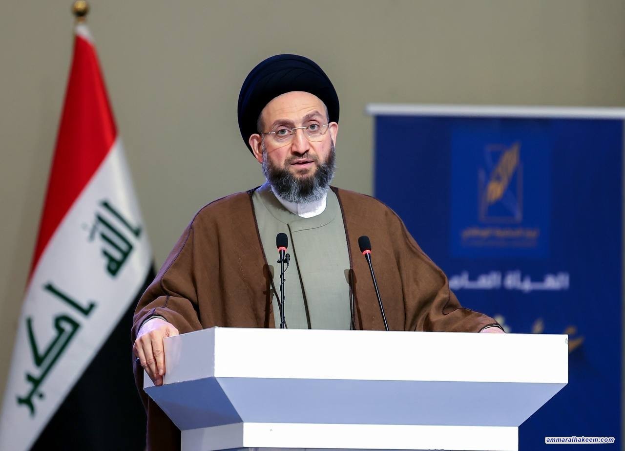 كما أكد السيد الحكيم على أهمية تبني المشروع الوطني وتغليب المصلحة العامة على المصالح الخاصة، مشددًا على ضرورة تعزيز الوحدة الوطنية ورفض الطائفية. وأشار إلى ضرورة الالتزام بالقانون ومنهج الدولة مع الانفتاح على الجميع داخل المكون الأكبر وباقي المكونات.