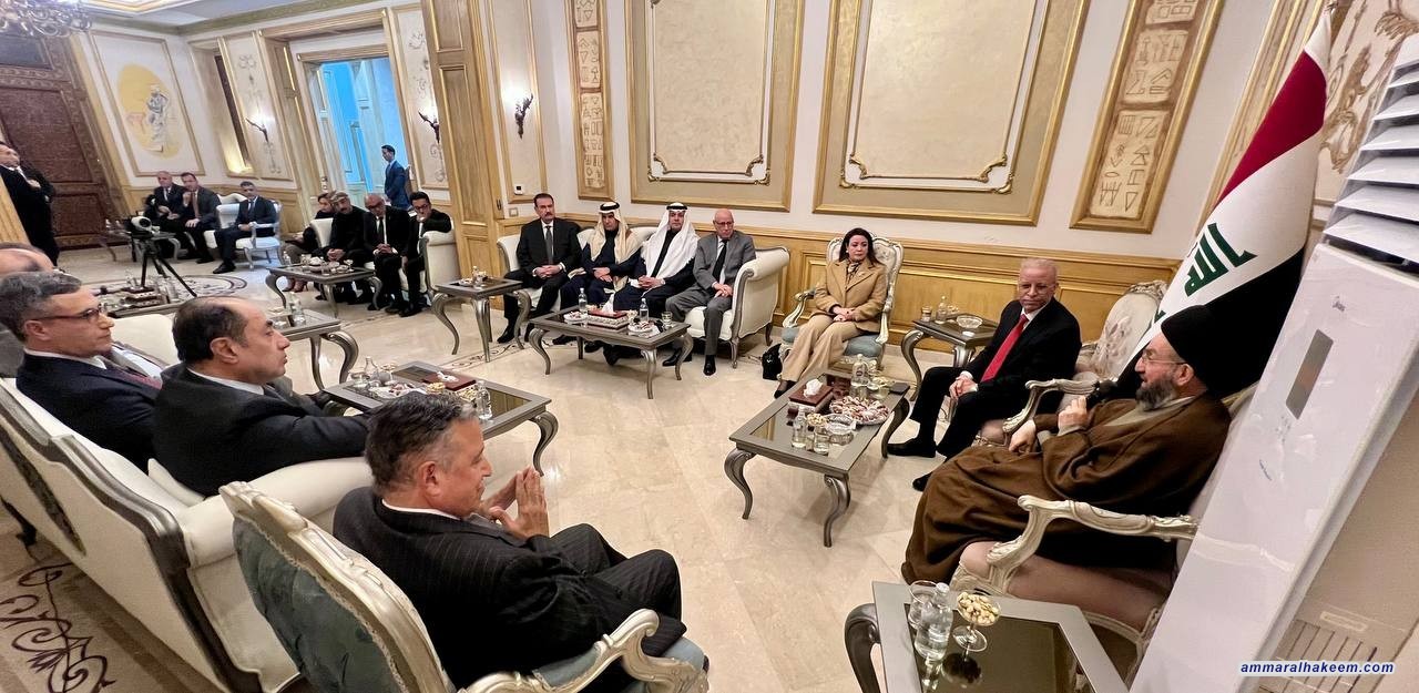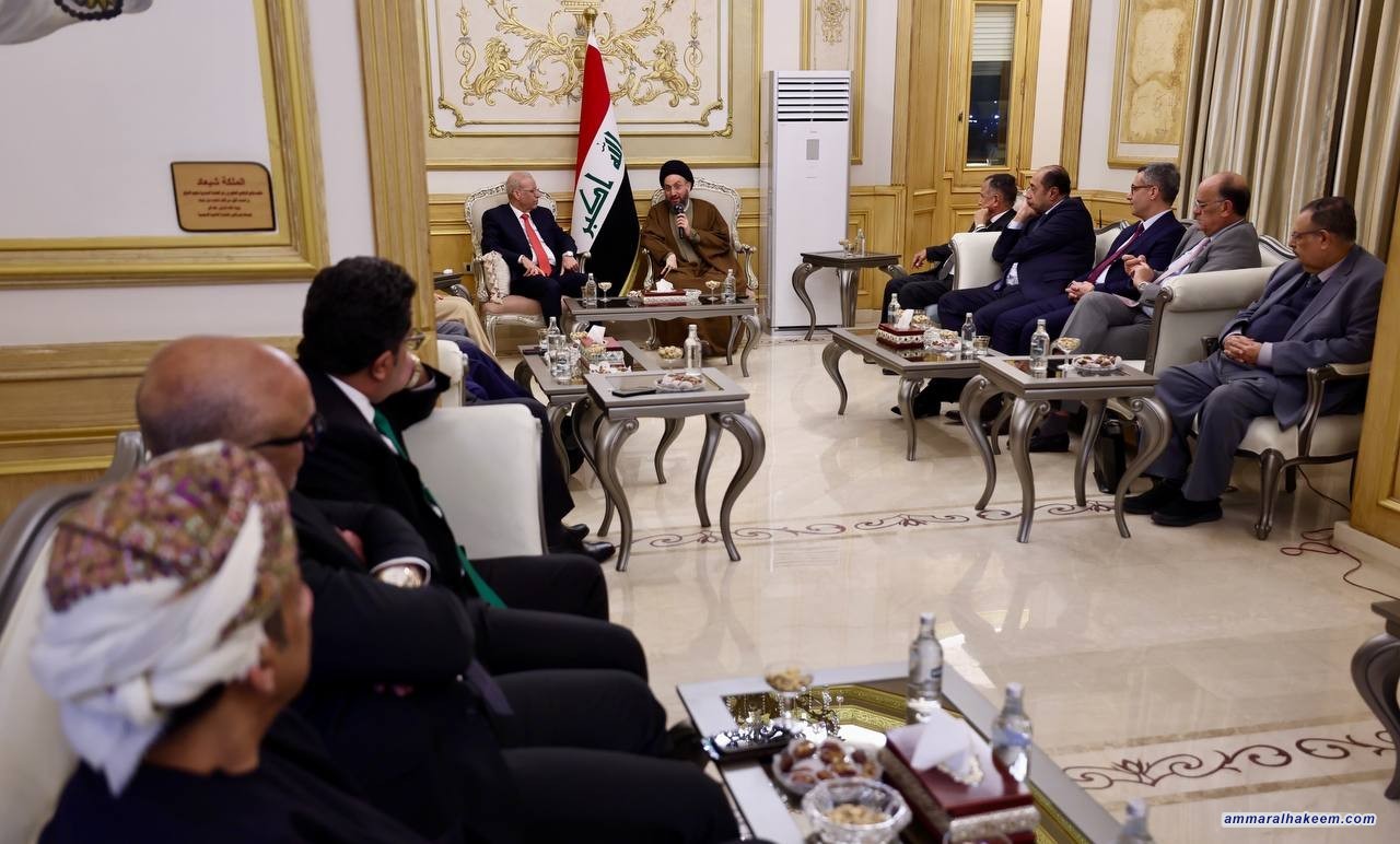 أما فيما يتعلق بالشأن العراقي، فقد شدد السيد الحكيم على ضرورة الحفاظ على استقرار الوضع السياسي في العراق، مع التأكيد على دعم جهود الحكومة العراقية في إعادة الإعمار، مشيداً بالخطوات التي قطعتها الحكومة في تحسين الخدمات والبنى التحتية. كما أكد دعم العراق لمواقف الحكومة في مختلف القضايا السياسية الإقليمية والدولية، مشيراً إلى أهمية إنجاح القمة العربية الدورية التي ستعقد في بغداد خلال الأشهر المقبلة.