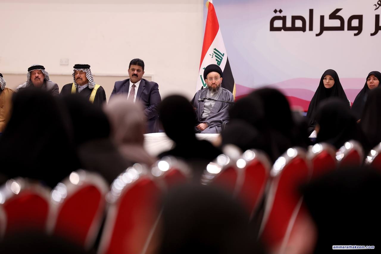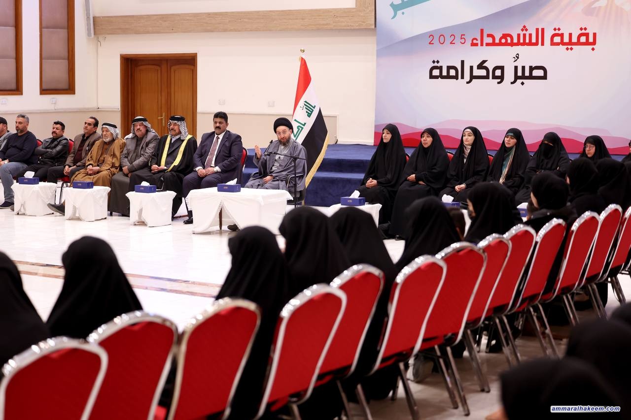 وأشاد السيد الحكيم بتضحيات النساء اللاتي فقدن أبناءهن، أزواجهن، آباءهن، أو إخوانهن في سبيل الوطن، داعيًا عوائل الشهداء إلى الفخر بعطاء أبنائهم، معربًا عن بالغ حزنه لما يجري في سوريا بحق العلويين وبقية المكونات.