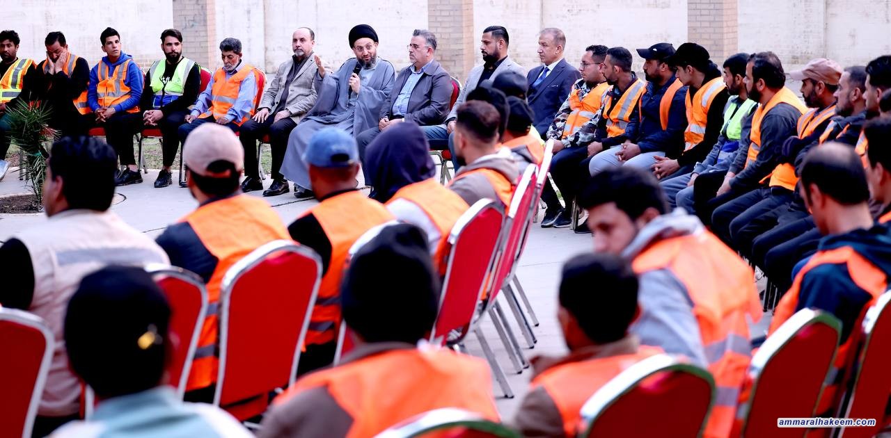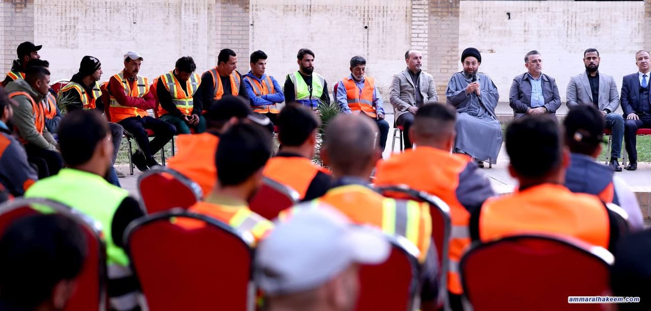 وفيما يتعلق بشريحة مهندسي النظافة، دعا السيد الحكيم إلى إنصافهم ومنحهم حقوقهم، مؤكدًا على ضرورة النظر إلى الممتلكات العامة كأنها ممتلكات خاصة، مع ضرورة الحفاظ عليها والعناية بها. كما شدد على أهمية العمل بجدية وإتقان في كافة مجالات الحياة.