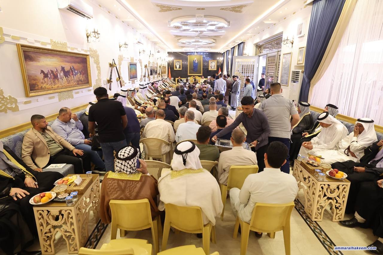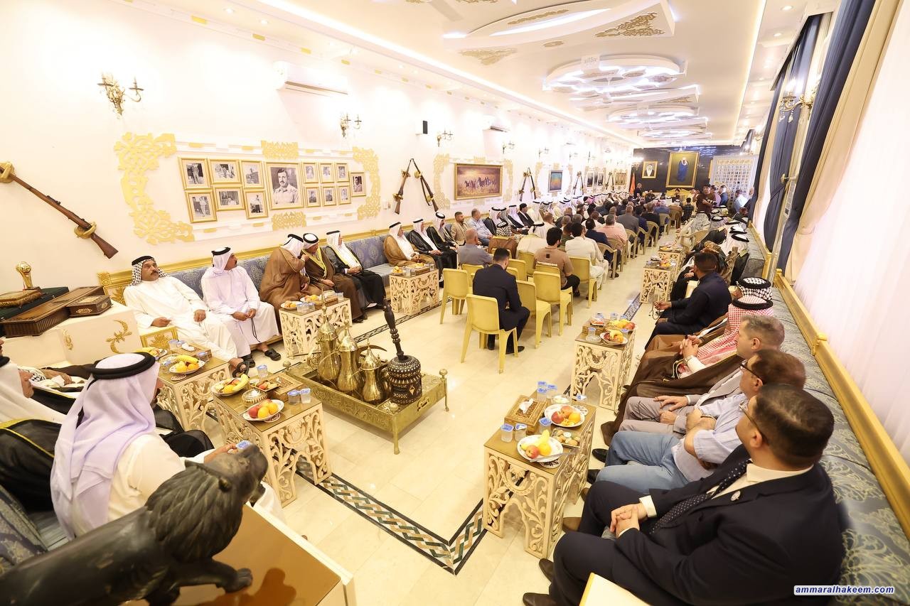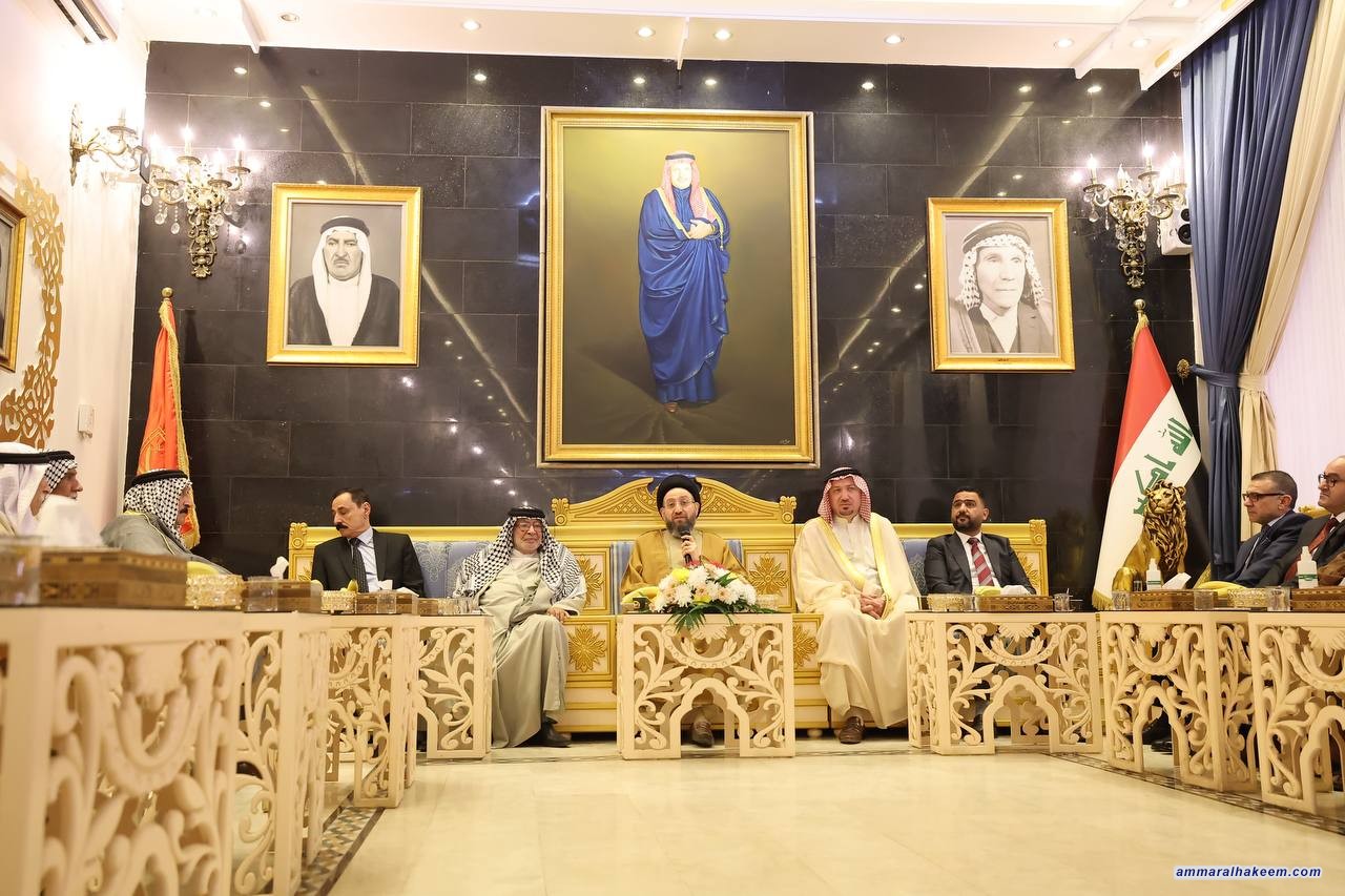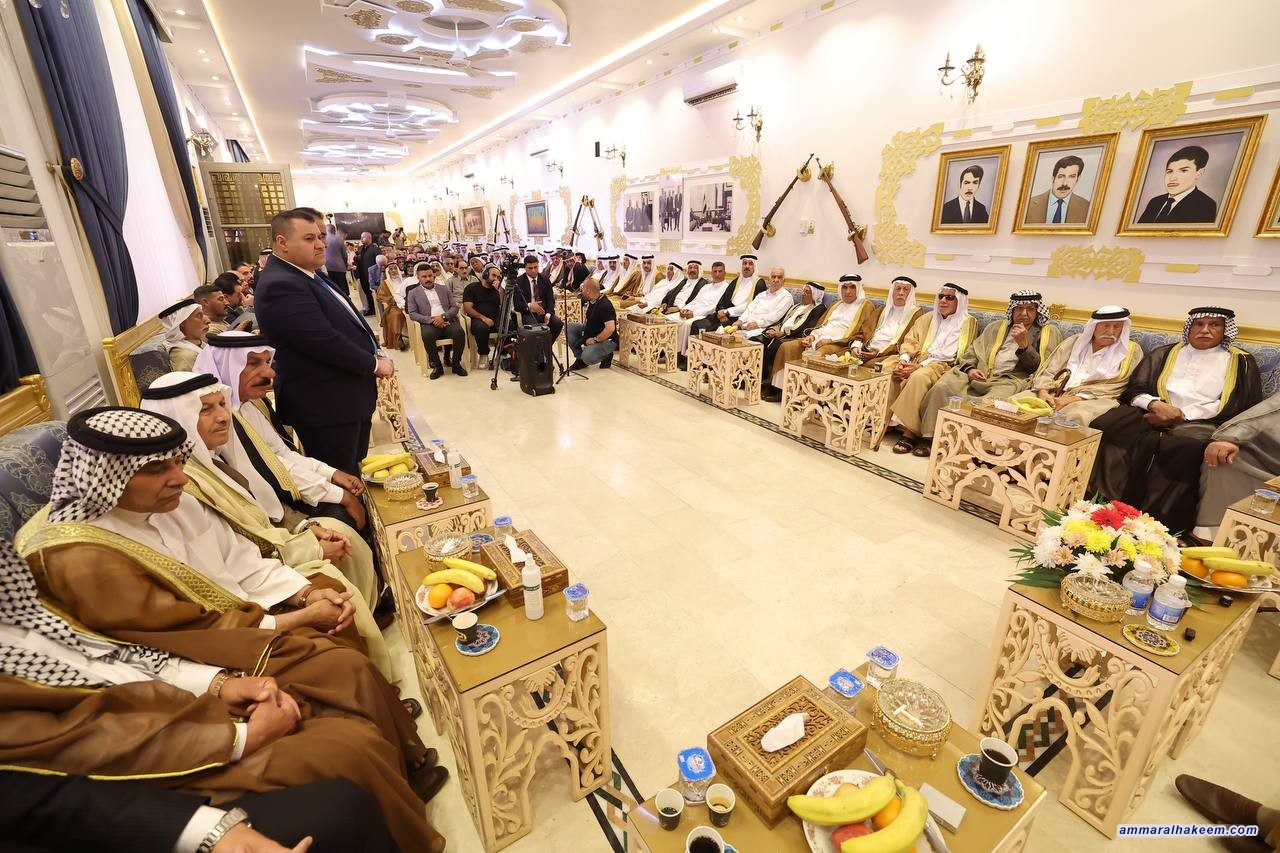 السيد الحكيم من مضيف إمارة ربيعة في قضاء بلد: التضحيات تصنع المجد، والثأر الحقيقي يكون بإعمار العراق