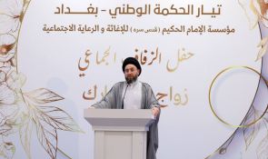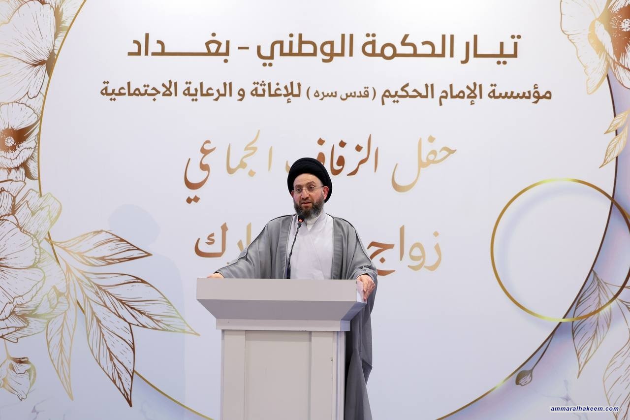 السيد الحكيم يبارك للعرسان في حفل الزفاف الجماعي ويشدد على أهمية التماسك الأسري وبناء المجتمع القوي