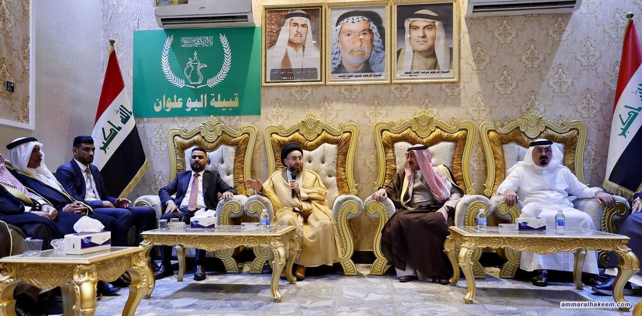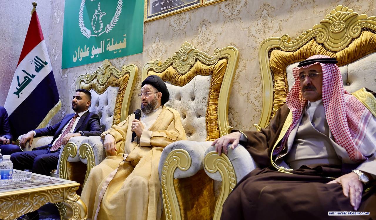 السيد الحكيم من مضيف قبيلة البوعلوان في الأنبار: الأنبار تجاوزت السنين العجاف والعراق يتجه نحو ترسيخ الدولة القوية