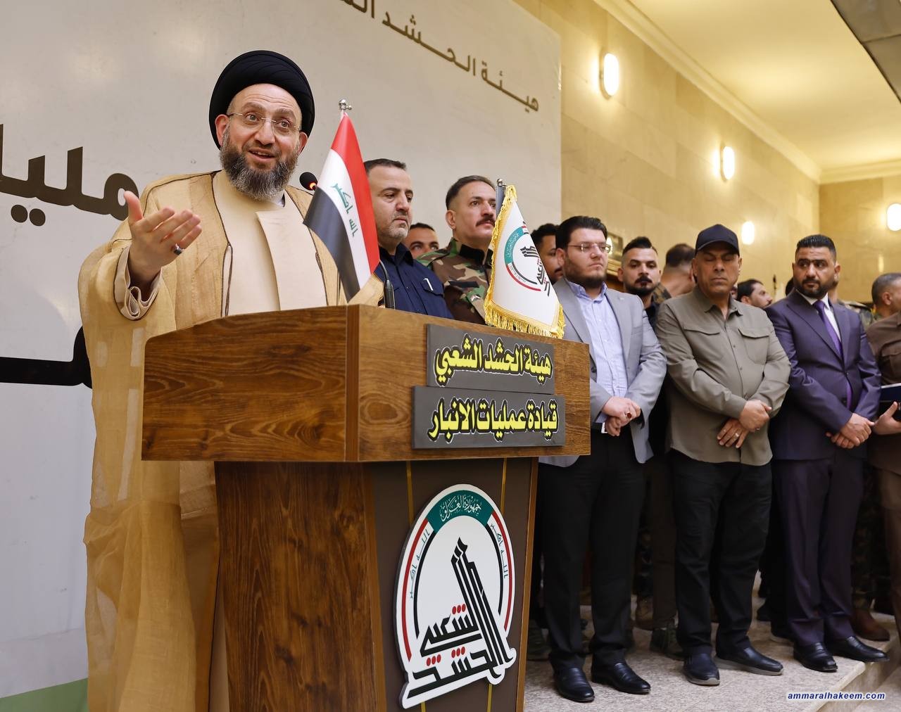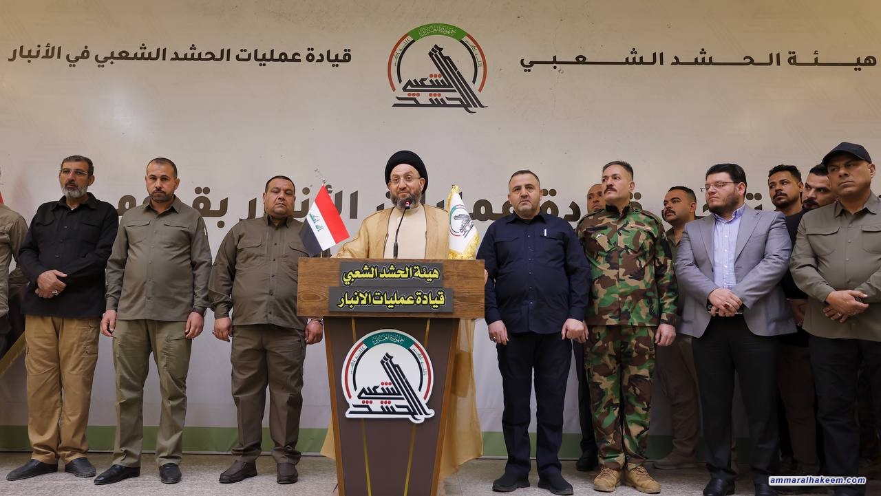 السيد الحكيم من مقر عمليات الحشد الشعبي في الأنبار: الحشد صمّام أمان العراق وتضحياته وضعت أسس الاستقرار والأمن
