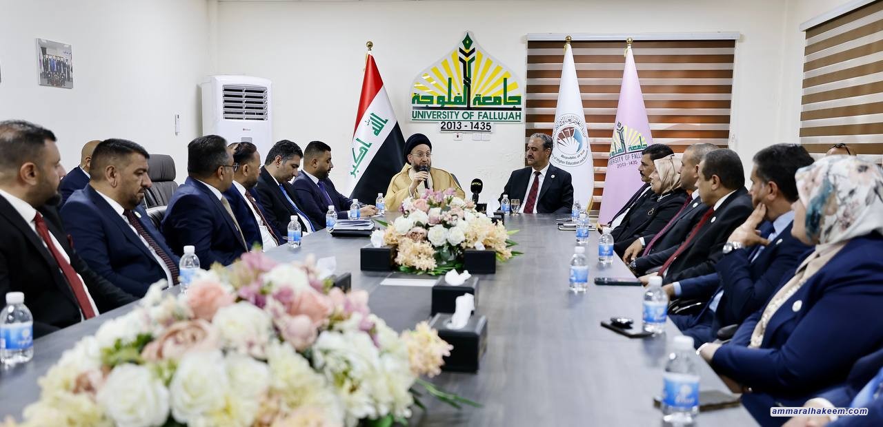السيد الحكيم من جامعة الفلوجة: ندعو الجامعات للمساهمة في البناء ومواجهة التحديات المجتمعية