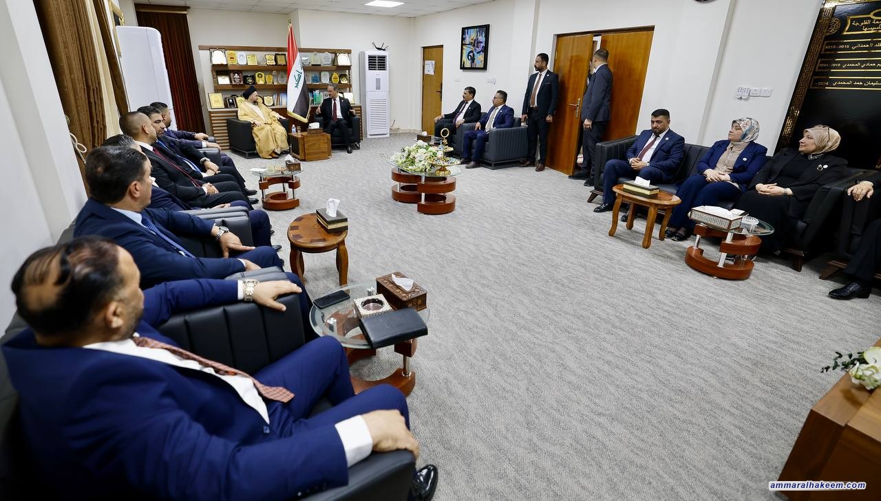 وأكد السيد الحكيم خلال اللقاء على أهمية دور الجامعات في المساهمة الفاعلة في عملية البناء والإعمار من خلال تقديم الدراسات والمقترحات العلمية لمعالجة التحديات الأساسية التي تواجه البلاد، لا سيما في المجالات البنيوية والتنموية.