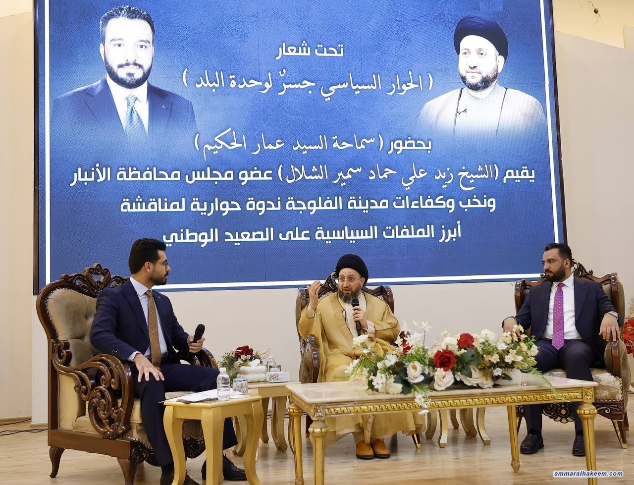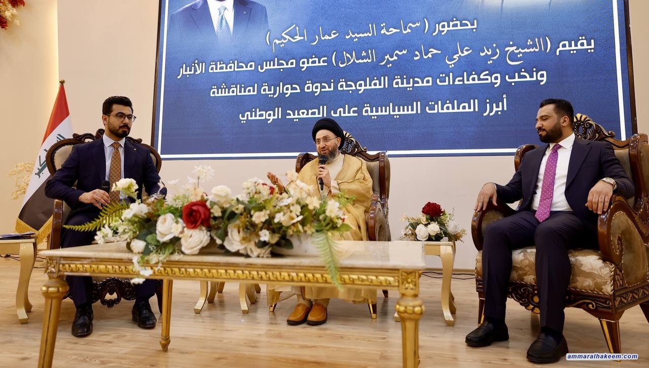 شارك السيد الحكيم رئيس تحالف قوى الدولة الوطنية، في الندوة الحوارية التي أقامها عضو مجلس محافظة الأنبار، الشيخ زيد علي حماد الشلال، في مدينة الفلوجة، بحضور جمع من نخب وشباب المدينة. وخلال اللقاء، استعرض السيد الحكيم عدداً من القضايا الوطنية والإقليمية، مؤكداً على ضرورة توسيع مساحة الحوار الوطني وتعزيز الوعي السياسي لدى الشباب.