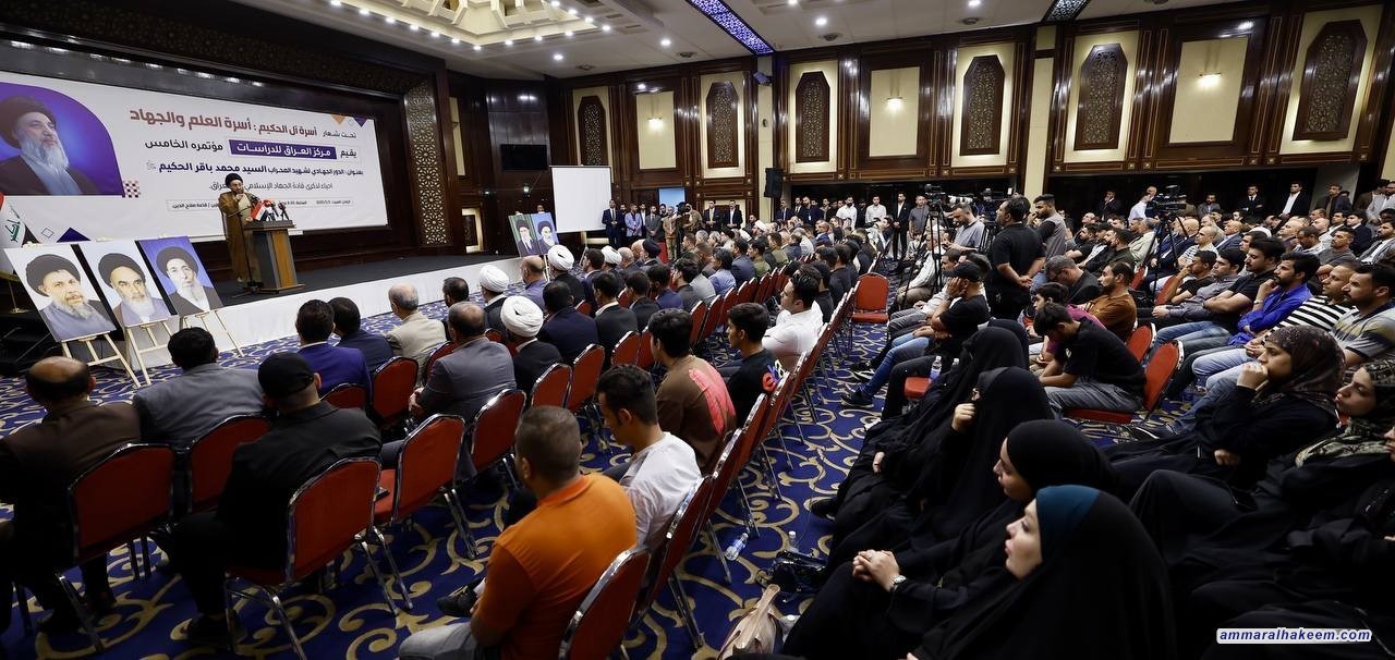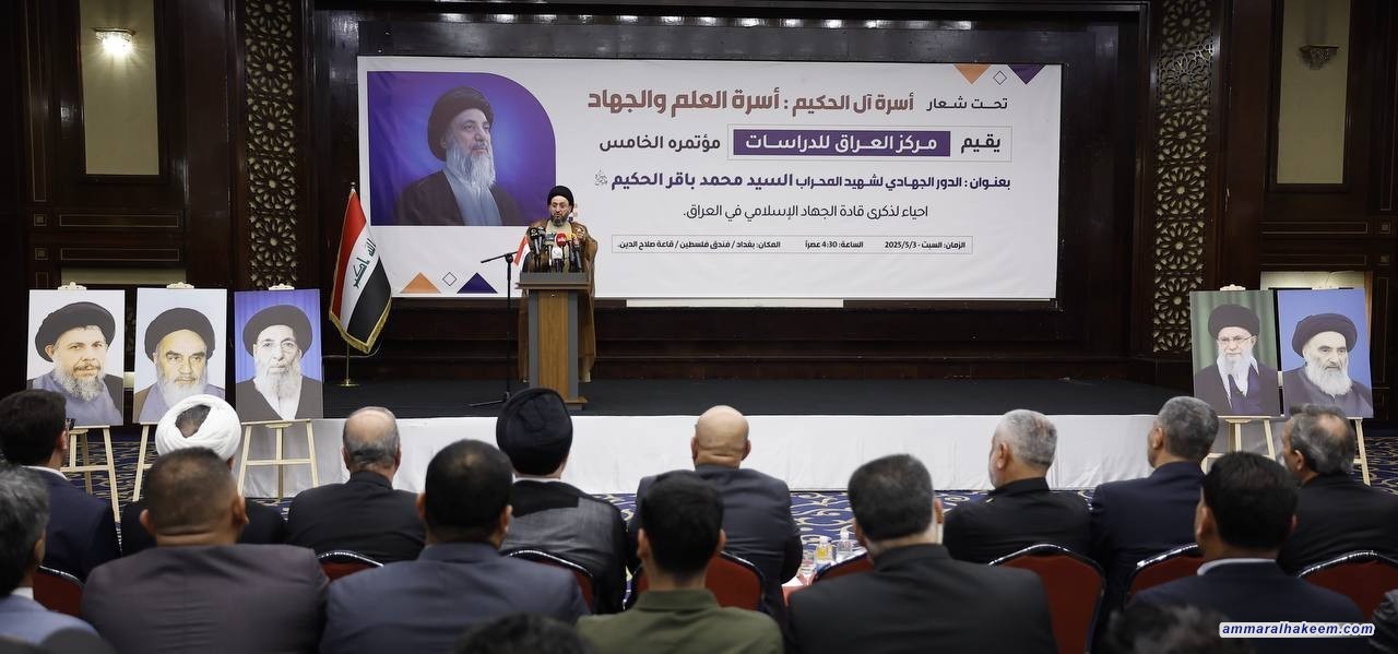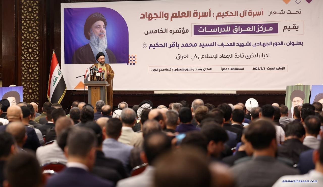 السيد الحكيم في المؤتمر الخامس لمركز العراق للدراسات: شهيد المحراب كان أنموذجاً فريداً في الجهاد والعلم والتربية