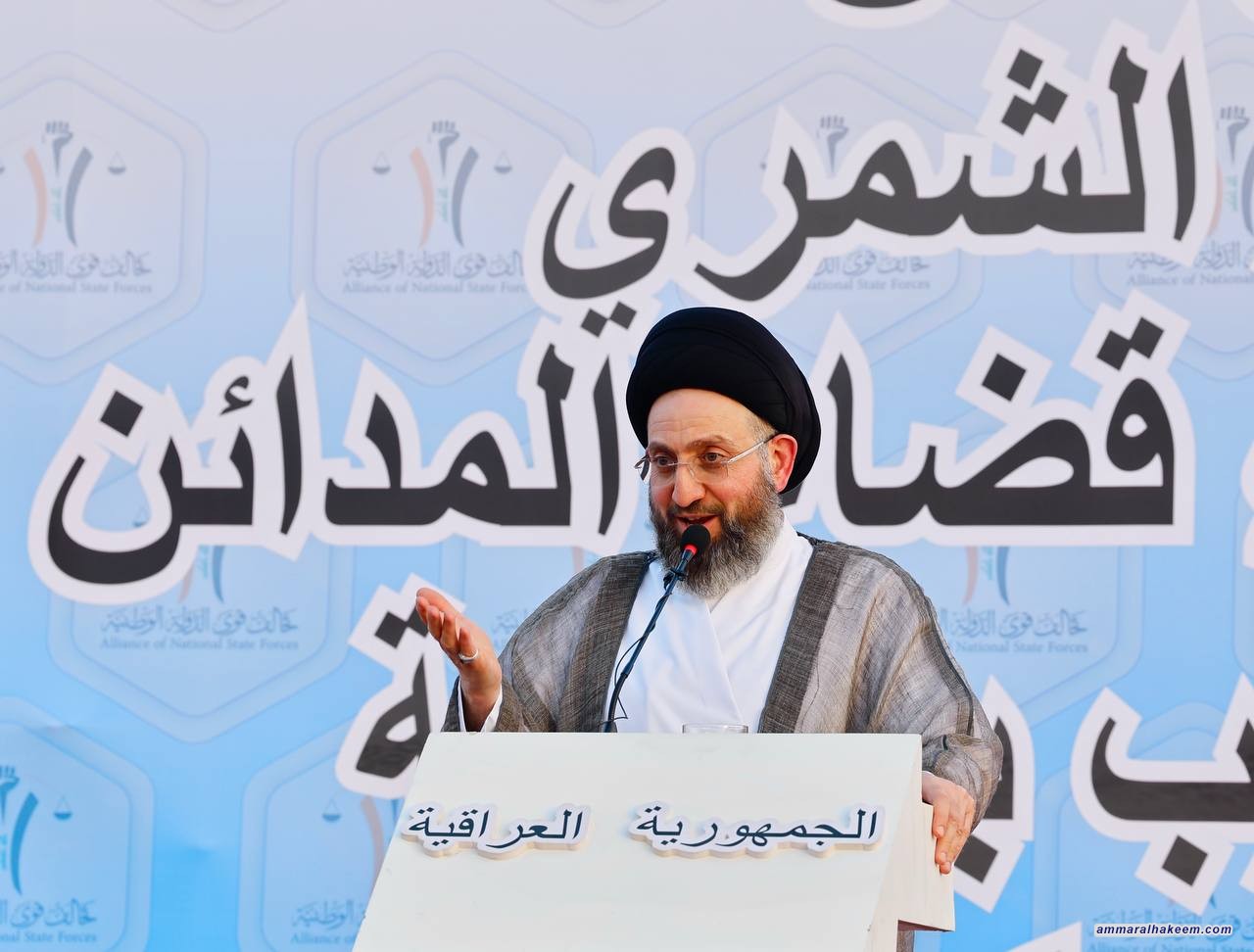 وأكد الحكيم أن المدائن تمثل رسالة حية للتعايش السلمي في العراق، وقد واجهت محاولات الأعداء لجعلها ساحة للاقتتال الداخلي، إلا أن وعي العشائر وسلوكها الوطني أفشل تلك المحاولات، مثمنًا دورهم في الحفاظ على النسيج الوطني، ومشدّدًا على أهمية تحسين الواقع الخدمي في القضاء.
