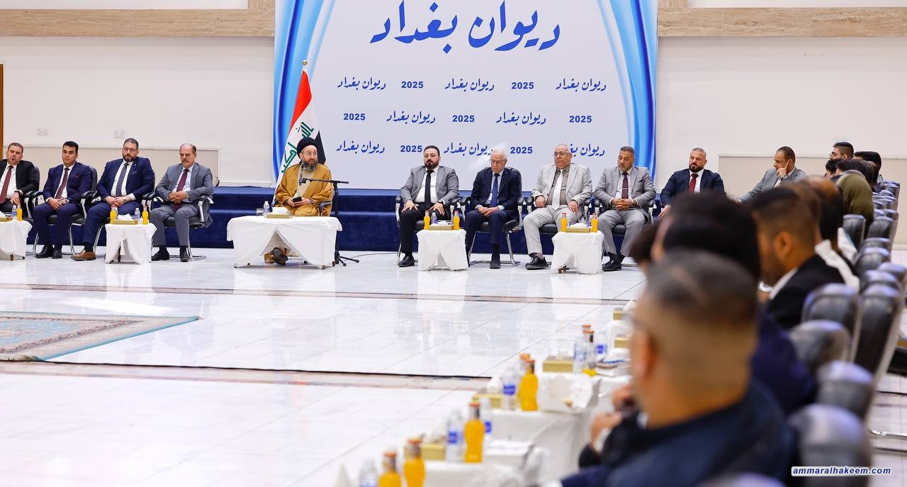 السيد الحكيم في ديوان بغداد للقيادات النقابية والمهنية: النقابات ركيزة أساسية لبناء الدولة، والعراق يلعب دورًا فاعلًا في الأزمة الإقليمية