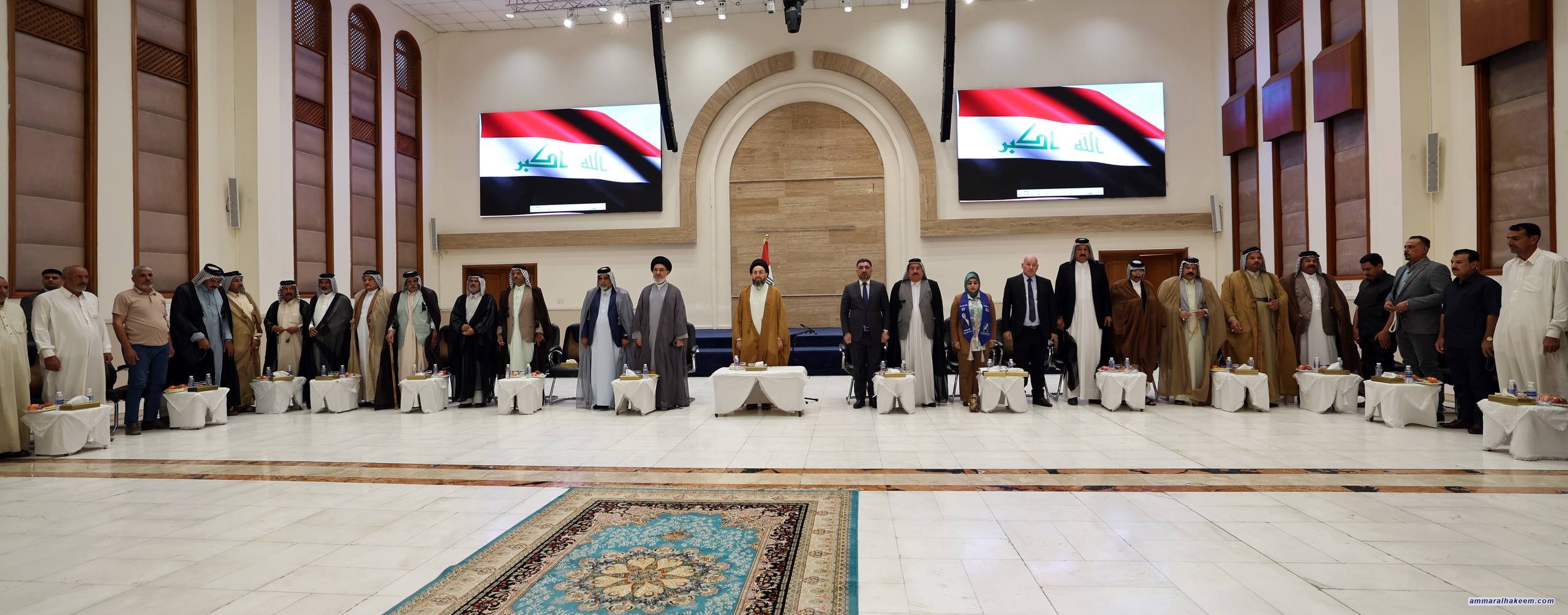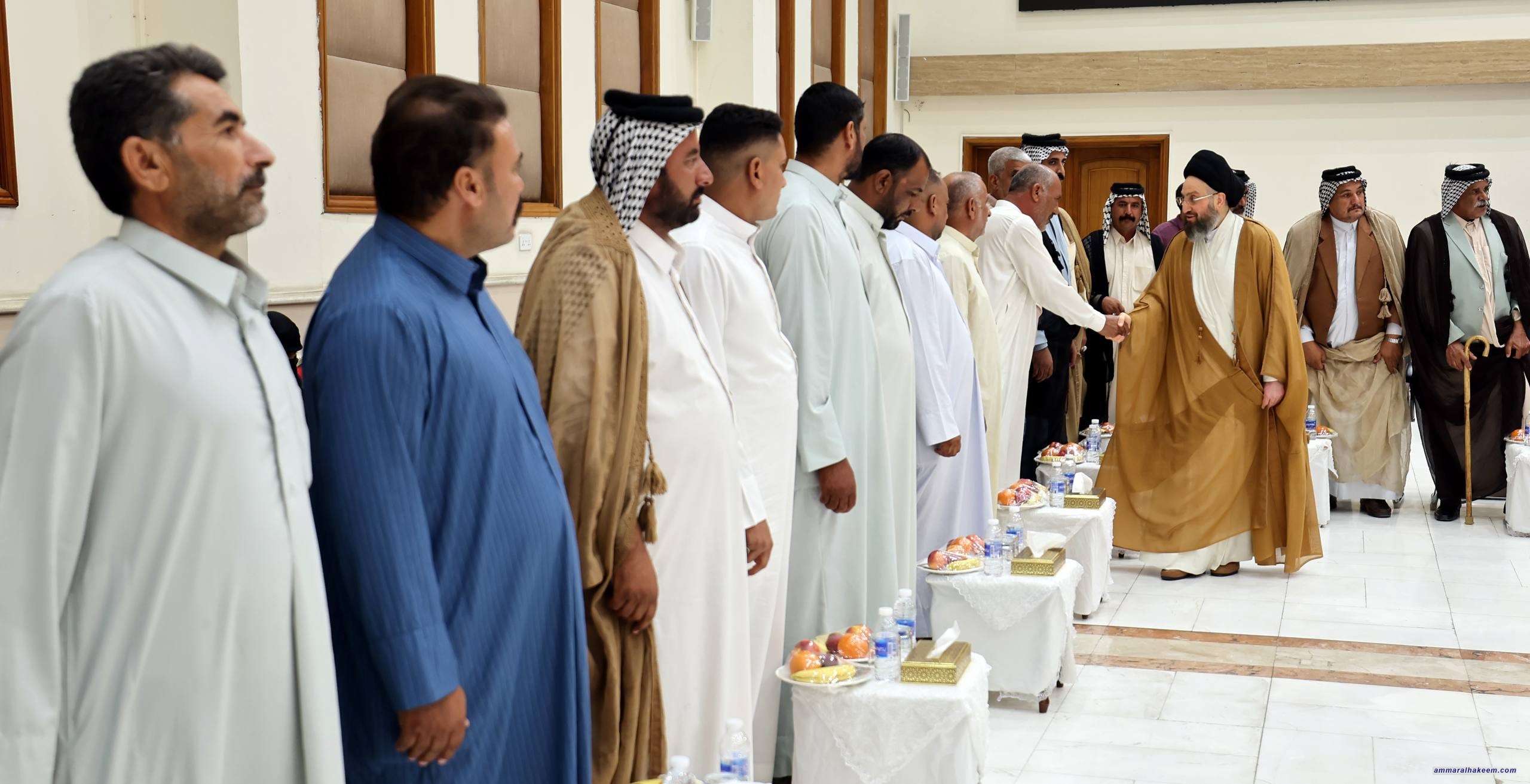 السيد الحكيم خلال لقائه وجهاء وشيوخ الديوانية وآل بدير: تجاوزنا مرحلة الاشتباك السياسي والتحدي القادم هو الخدمات والعدالة في توزيع الثروات