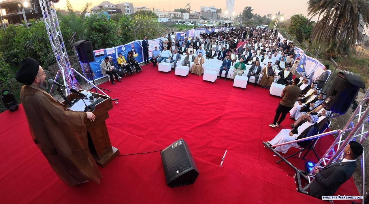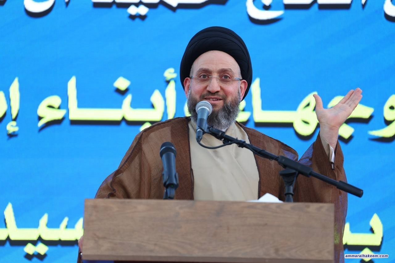 وجدّد السيد الحكيم التأكيد على خماسية الخدمات المتمثّلة بالماء والكهرباء والصحة والتعليم والبنى التحتية، مبيّنًا أن هذه الخماسية تشدّ المواطن إلى الوطن وتوفّر فرص العمل.