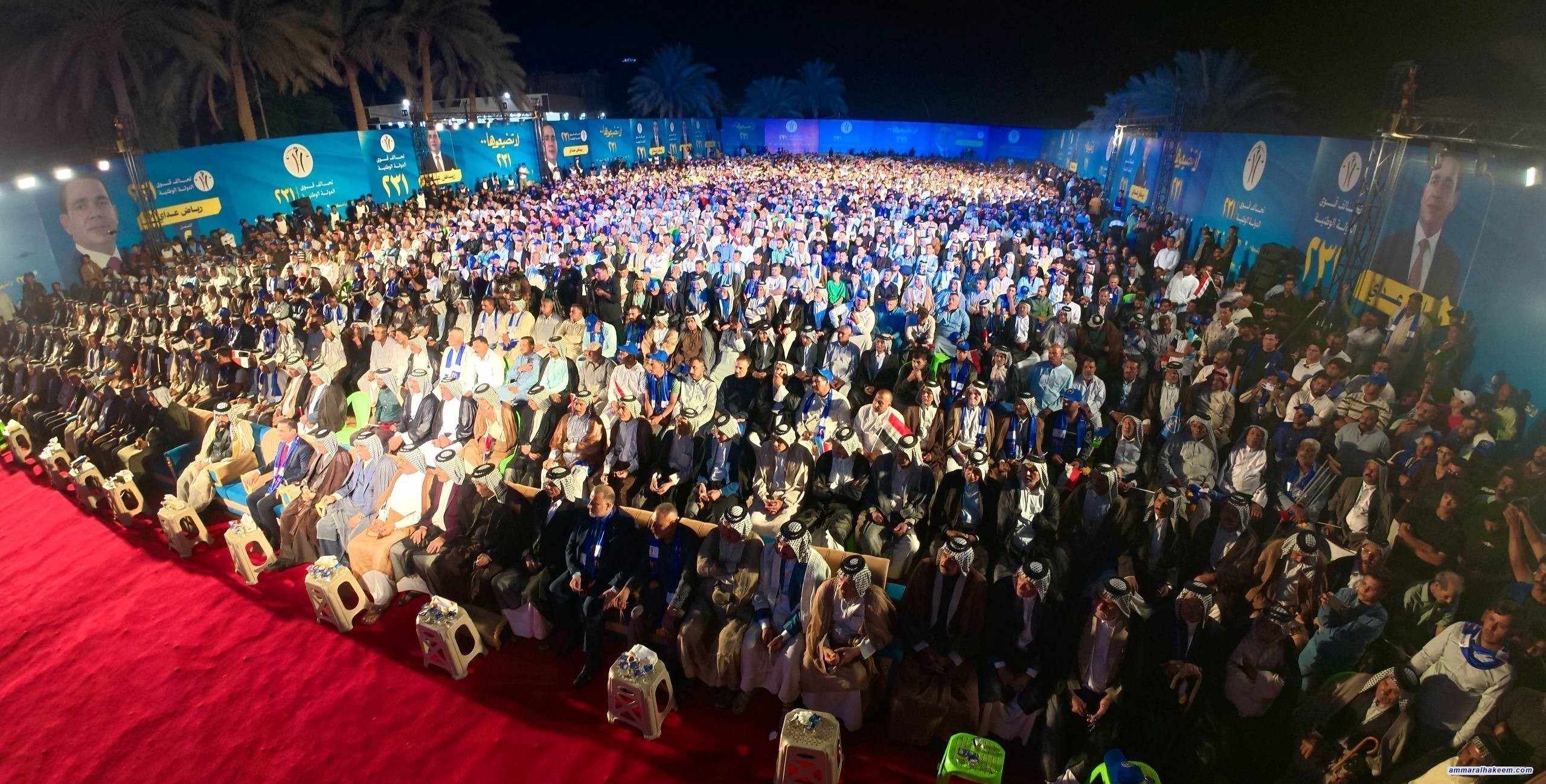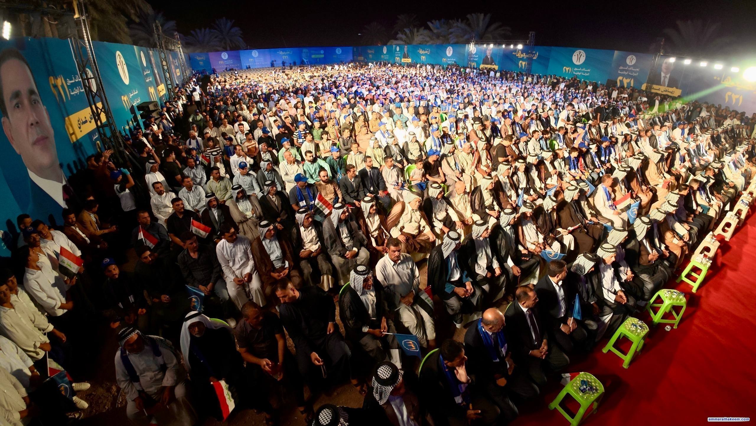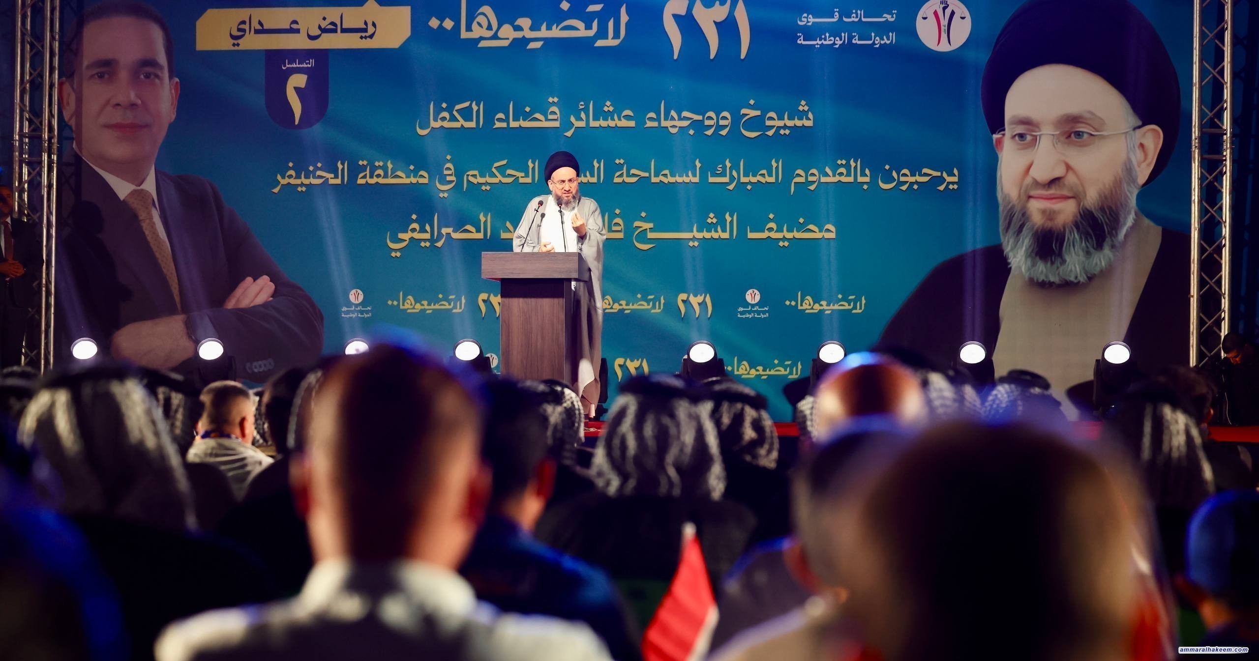 من منطقة خنيفر في قضاء الكفل بمحافظة بابل، التقى سماحة السيد عمار الحكيم، رئيس تحالف قوى الدولة الوطنية، جمعاً كبيراً من شيوخ ووجهاء قضاء الكفل وأبناء المنطقة.