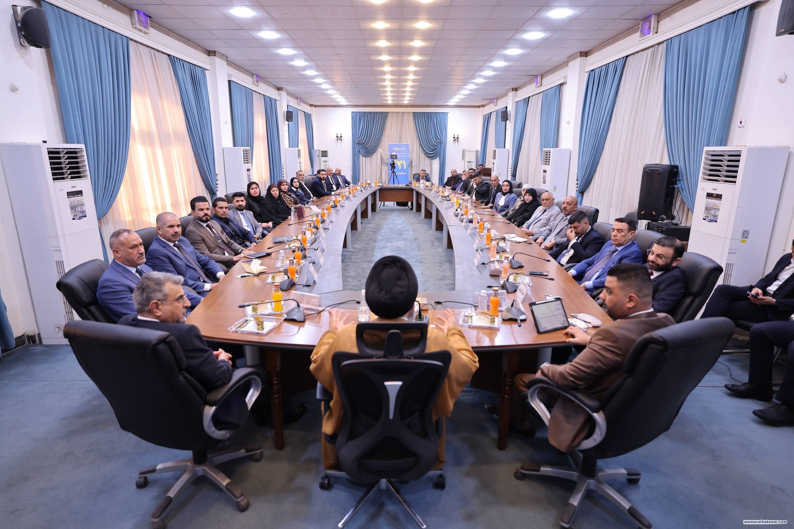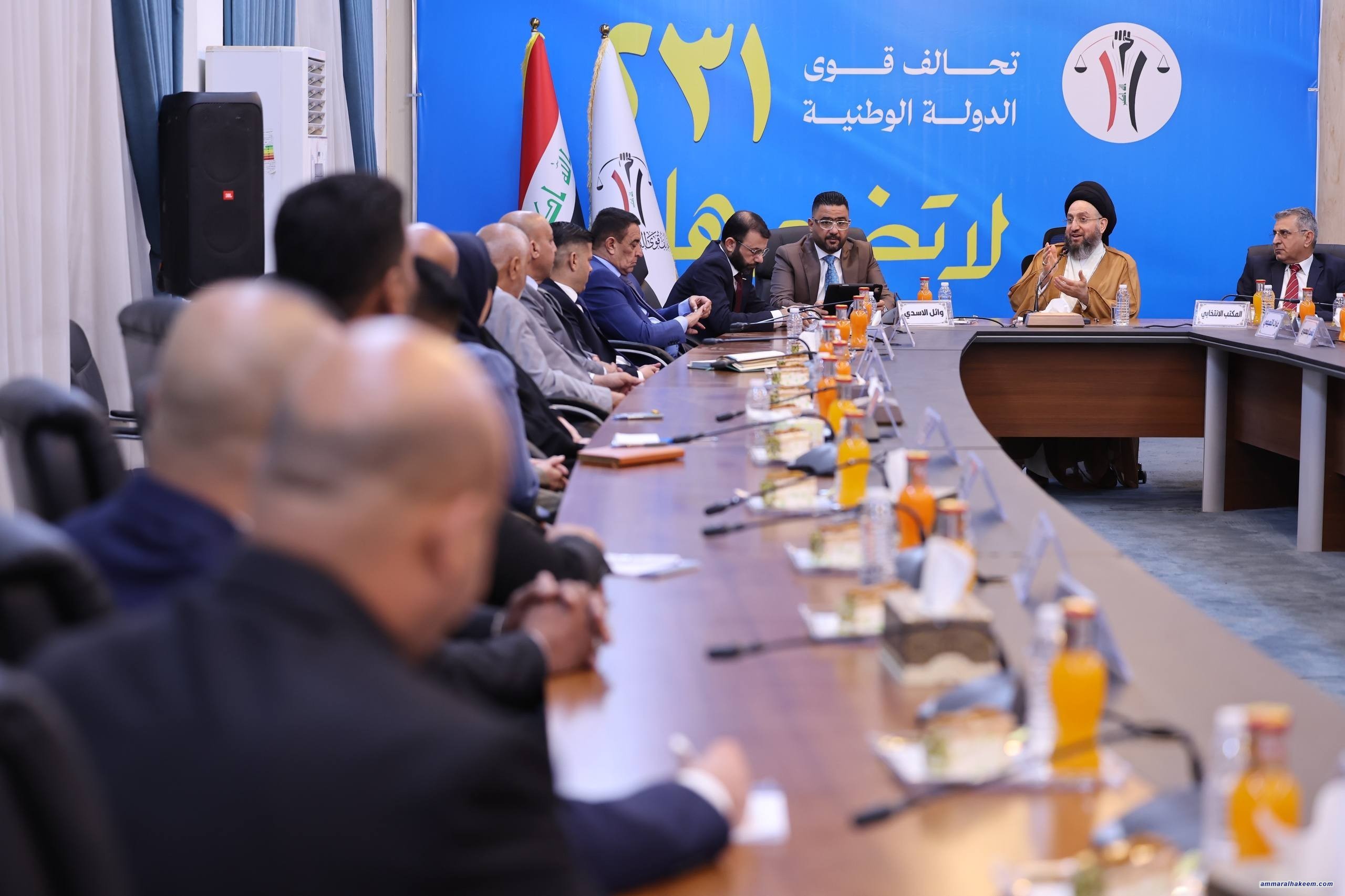 ودعا سماحته إلى تكثيف الجهود وتركيزها على المساحات المستهدفة والمنتجة والمتفاعلة، محذراً من تشتيت الجهود، ومؤكداً أن الانتصار لمشروع قوى الدولة الوطنية هو انتصار للعراق واستقراره . وقال سماحته إن مخرجات الانتخابات ستسهم بشكل مباشر في دعم الاستقرار وتحويله إلى استقرار مستدام، داعياً في الوقت نفسه إلى التعريف بمنهج الاعتدال والوسطية ودوره في حفظ العراق.