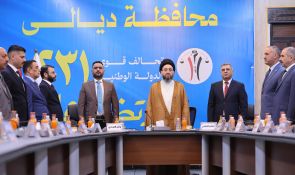 من محافظة ديالى، التقى سماحة السيد الحكيم، رئيس تحالف قوى الدولة الوطنية، بمرشحي التحالف في المحافظة، وبعد أن استمع سماحته إلى مداخلات الحضور، ثمّن الجهود التي يبذلها المرشحون للانتصار لمشروع قوى الدولة، مبدياً أسفه لاستخدام المال السياسي، وللضغوط التي تُمارس على بعض الموظفين والمنتسبين لاستحصال أصواتهم لصالح جهات سياسية معينة، مبيناً أن ذلك يولّد ضغطاً على المواطن وامتعاضاً تجاه الجهات التي أجبرته على التصويت، مؤكداً أن الصوت الحرام كالمال الحرام.