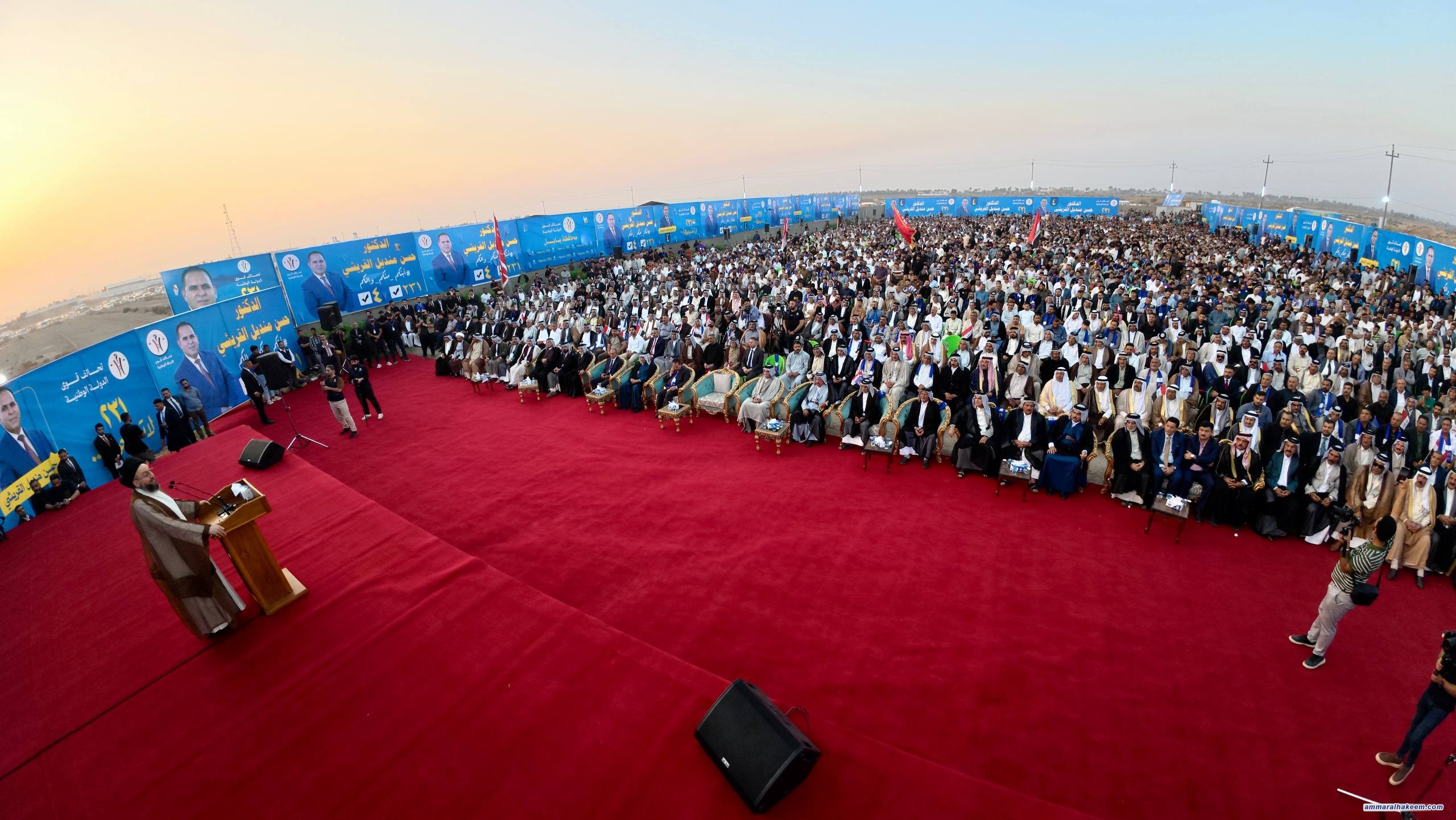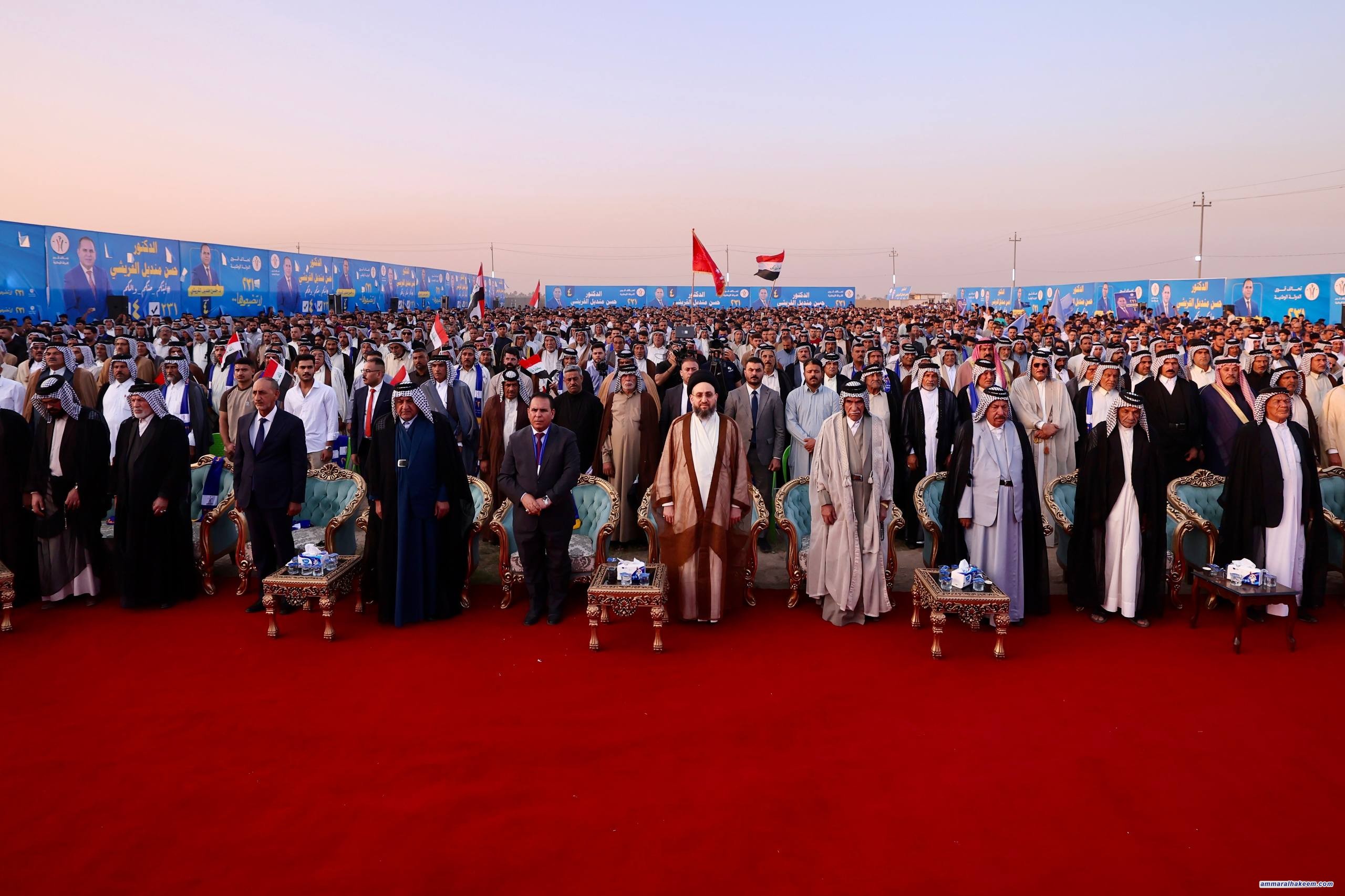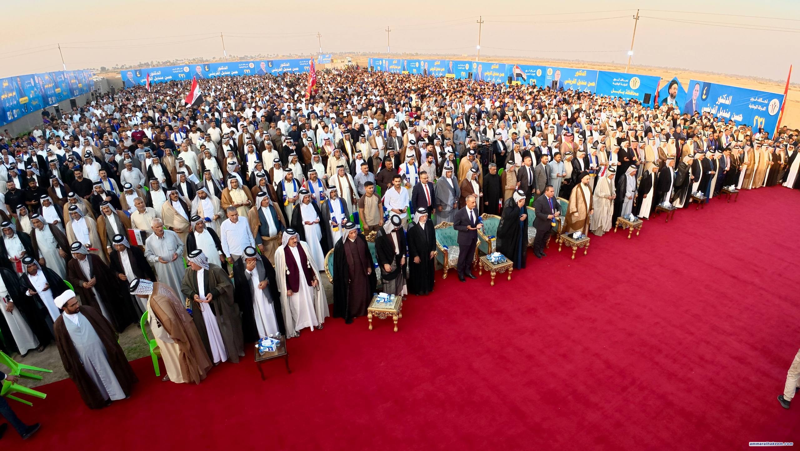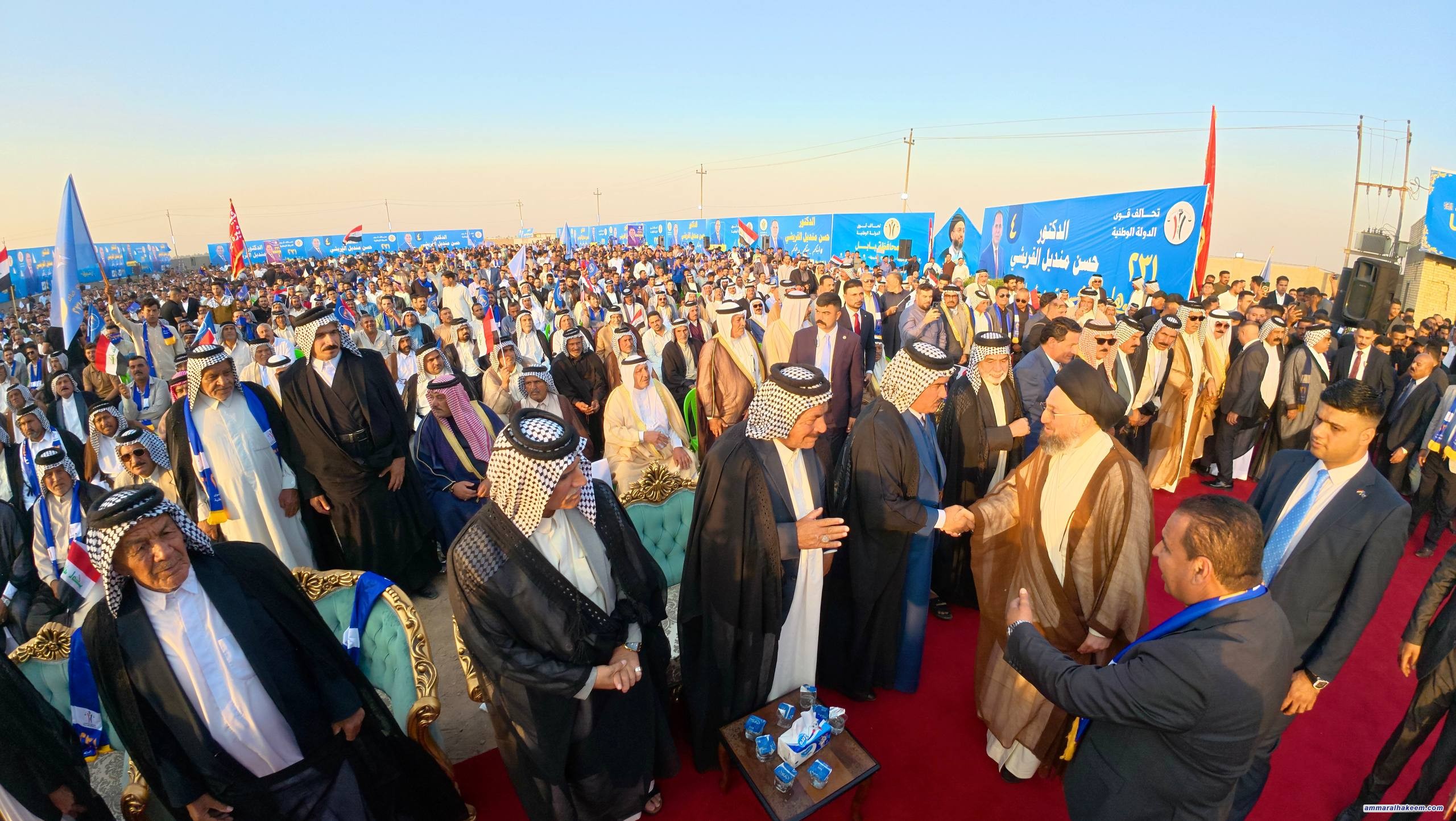 في مضارب قبيلة قريش في محافظة بابل، التقى سماحةُ السيد الحكيم، رئيسُ تحالف قوى الدولة الوطنية، مساء اليوم ٢٥ تشرين الأول ٢٠٢٥، جمعًا كبيرًا من شيوخ ووجهاء قبيلة قريش وعشائر بابل.