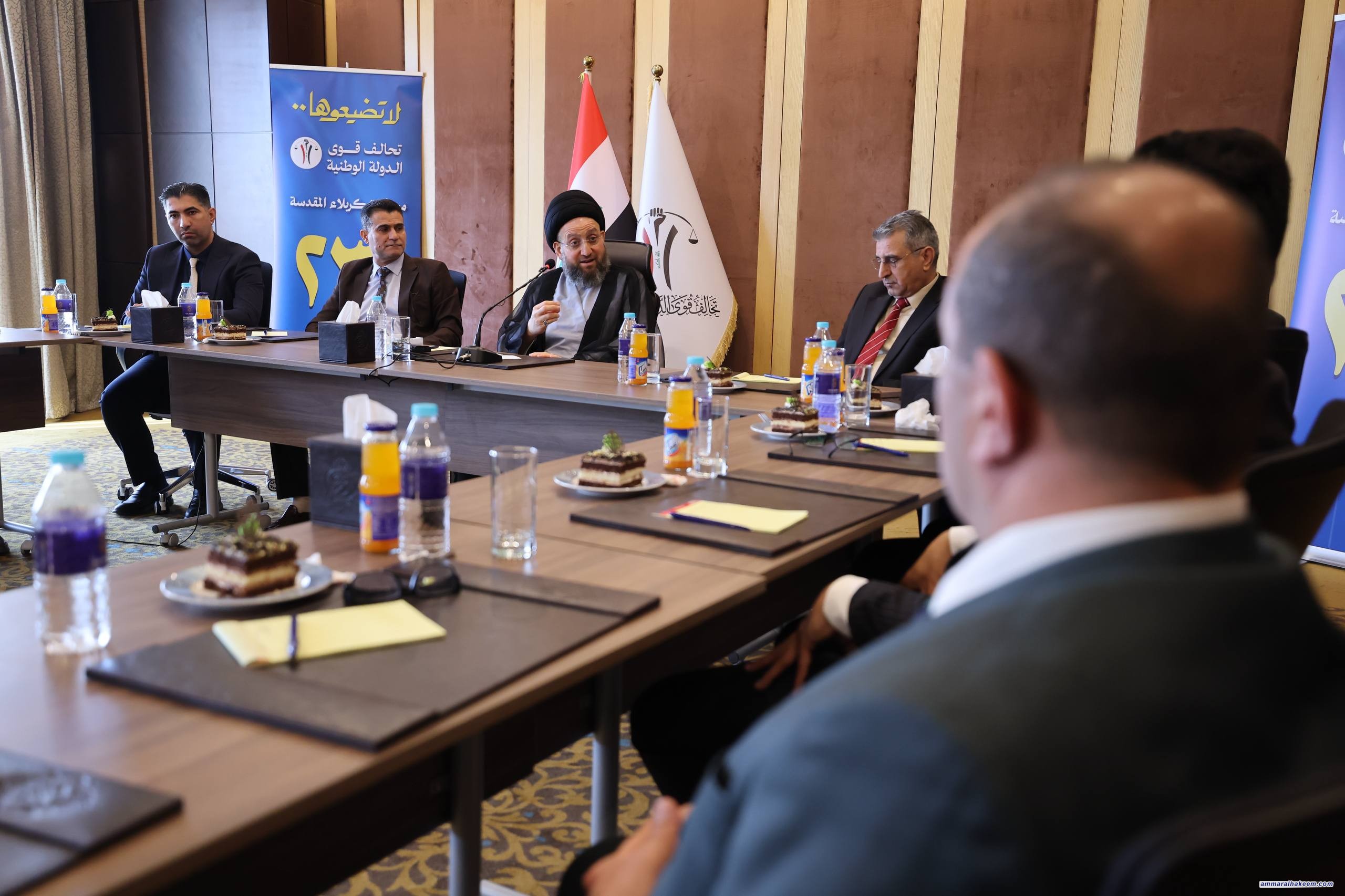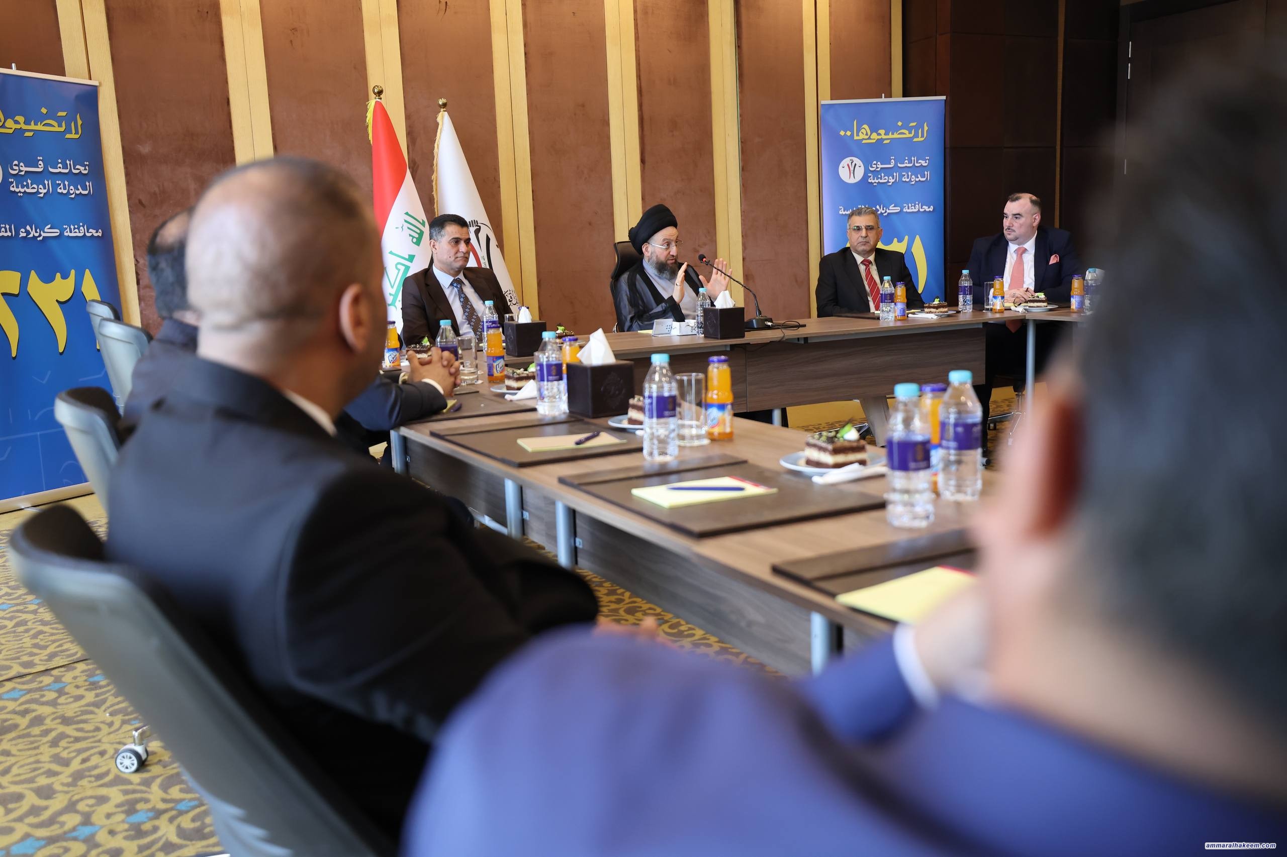 من كربلاء المقدسة، التقى سماحةُ السيد الحكيم، رئيسُ تحالف قوى الدولة الوطنية، بمرشّحي التحالف في المحافظة. وأشار سماحته في حديثه — بعد أن استمع إلى مداخلات الحضور — إلى أهمية الانتخابات القادمة عطفًا على توقيتها، وعلى الأوضاع التي شهدتها المنطقة في الفترة الماضية، قائلاً: إنّ العراق تعاطى مع قضايا المنطقة وتفاعل معها دون الانغماس فيها، فيما بيّن سماحته أن تمكين منهج الاعتدال والوسطية سيسهم في تعزيز استقرار العراق وتغليب منطق المشاريع والبرامج.