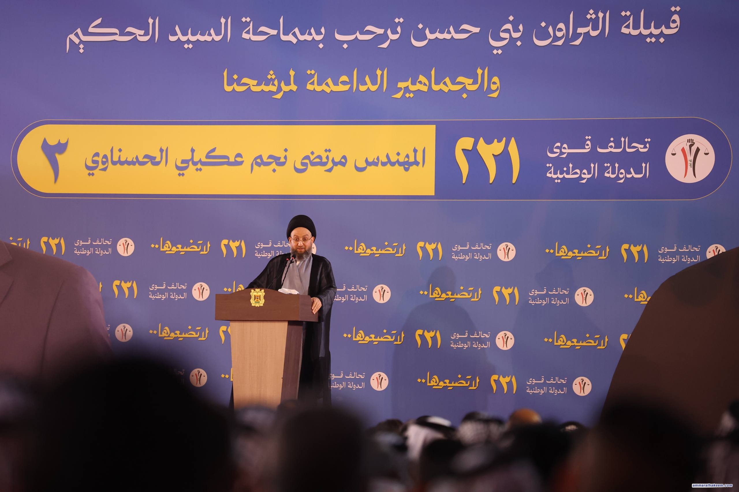 في محافظة كربلاء المقدسة، التقى سماحةُ السيد الحكيم، رئيسُ تحالف قوى الدولة الوطنية، جمعًا من الشيوخ والوجهاء من السادة آل الشريفي وأبناء كربلاء المقدسة.