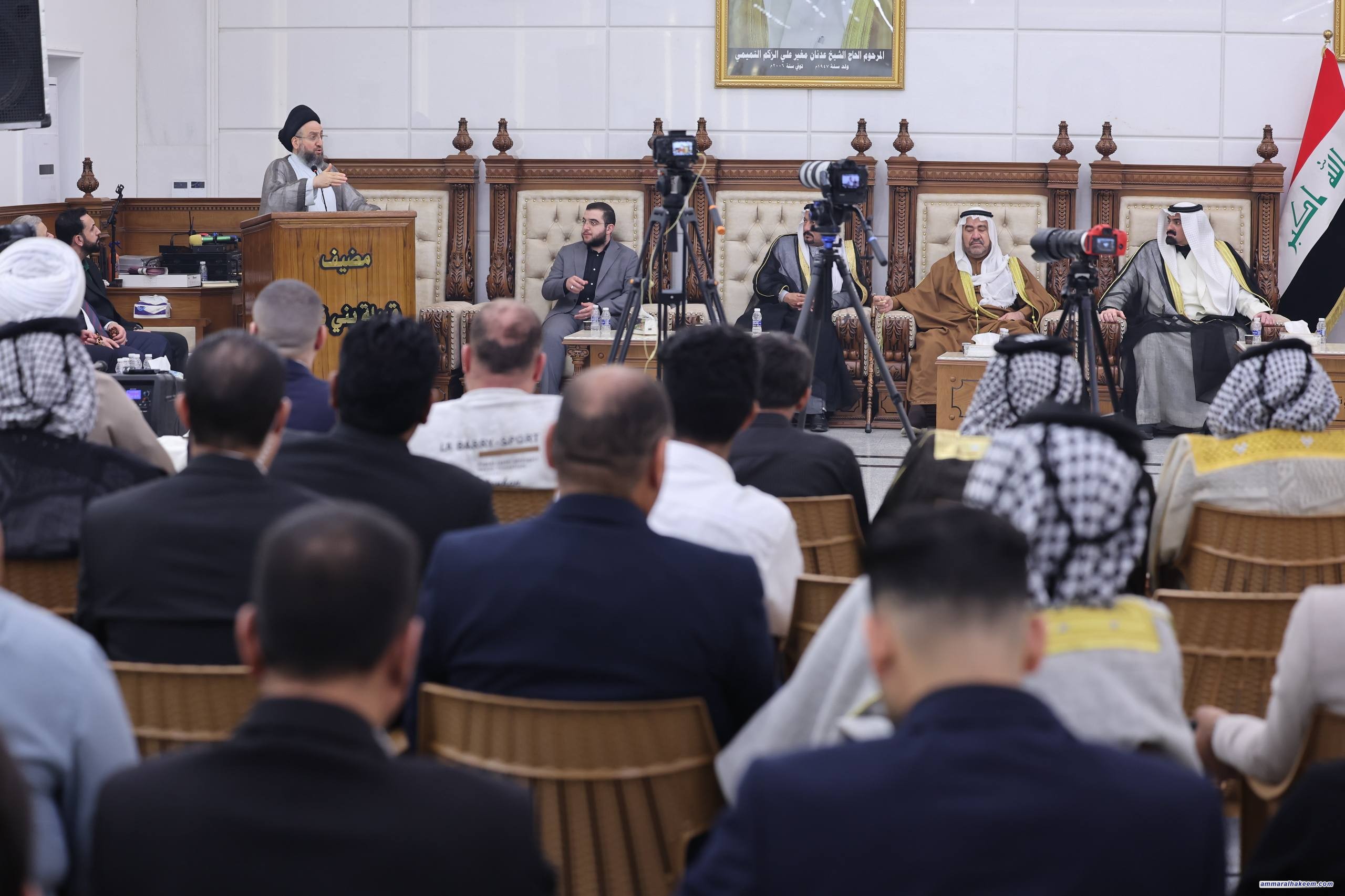 واستذكر سماحته خلال اللقاء التاريخ الطويل الذي يجمع أسرة آل الحكيم بهذه العشائر الكريمة، مشيرًا إلى أن الدماء والدموع كانت حاضرة في محطات عديدة من تاريخ العراق، وأكد سماحته أهمية إدارة التنوع في البلاد وتحويله إلى عنصر قوة من خلال ضمان الفرص العادلة لجميع أبناء الوطن، داعيًا إلى تعزيز قيم التعايش بين مكونات الشعب العراقي، ومبينًا أن الطائفية في أصلها سياسية وليست مجتمعية، فالعراق عبر تاريخه شهد تلاحمًا وتعايشًا راسخًا بين مكوناته.