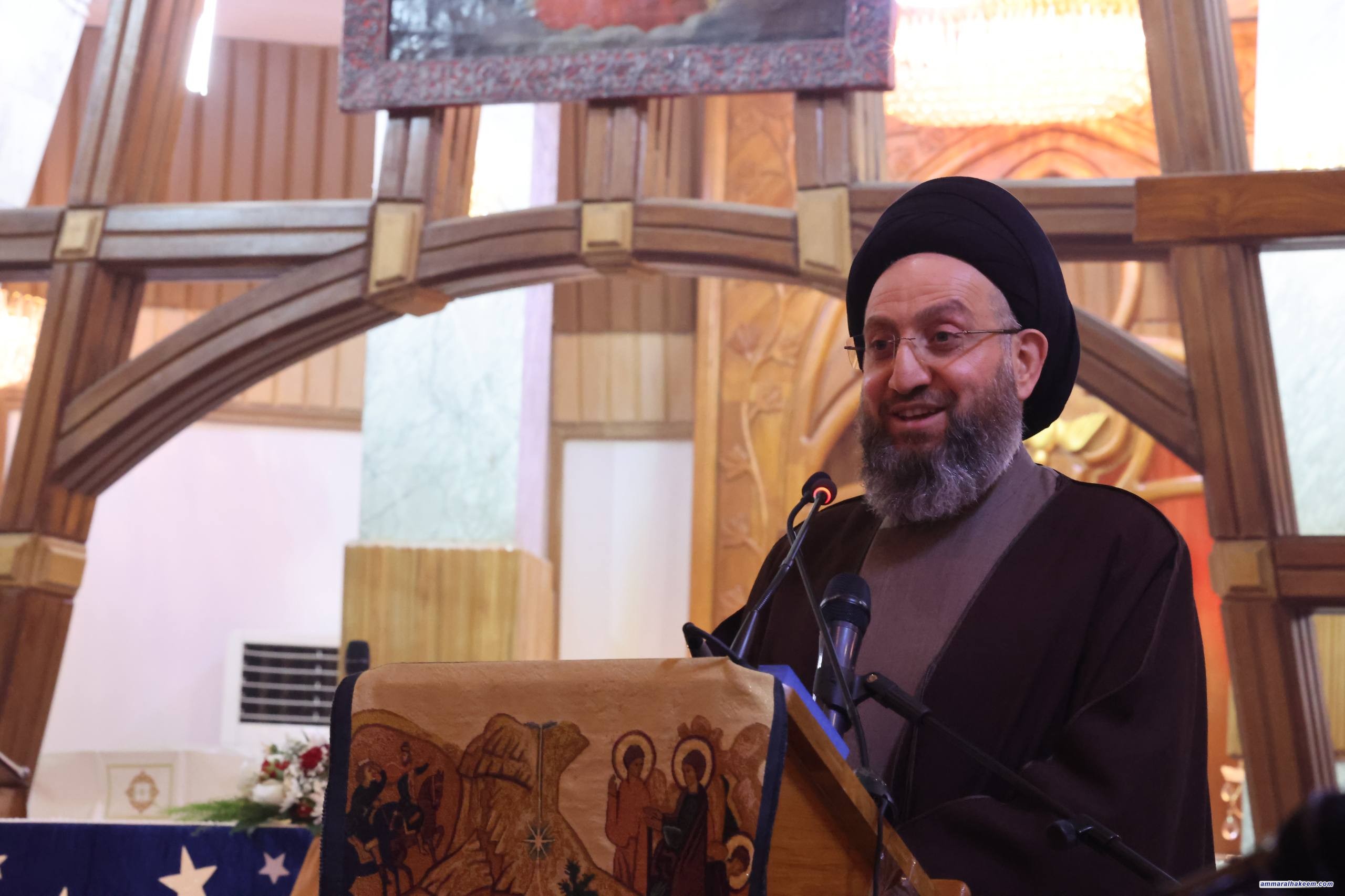 السيد الحكيم من كنيسة سيدة النجاة يبارك أعياد الميلاد ويدعو إلى ترسيخ قيم السلام والتعايش