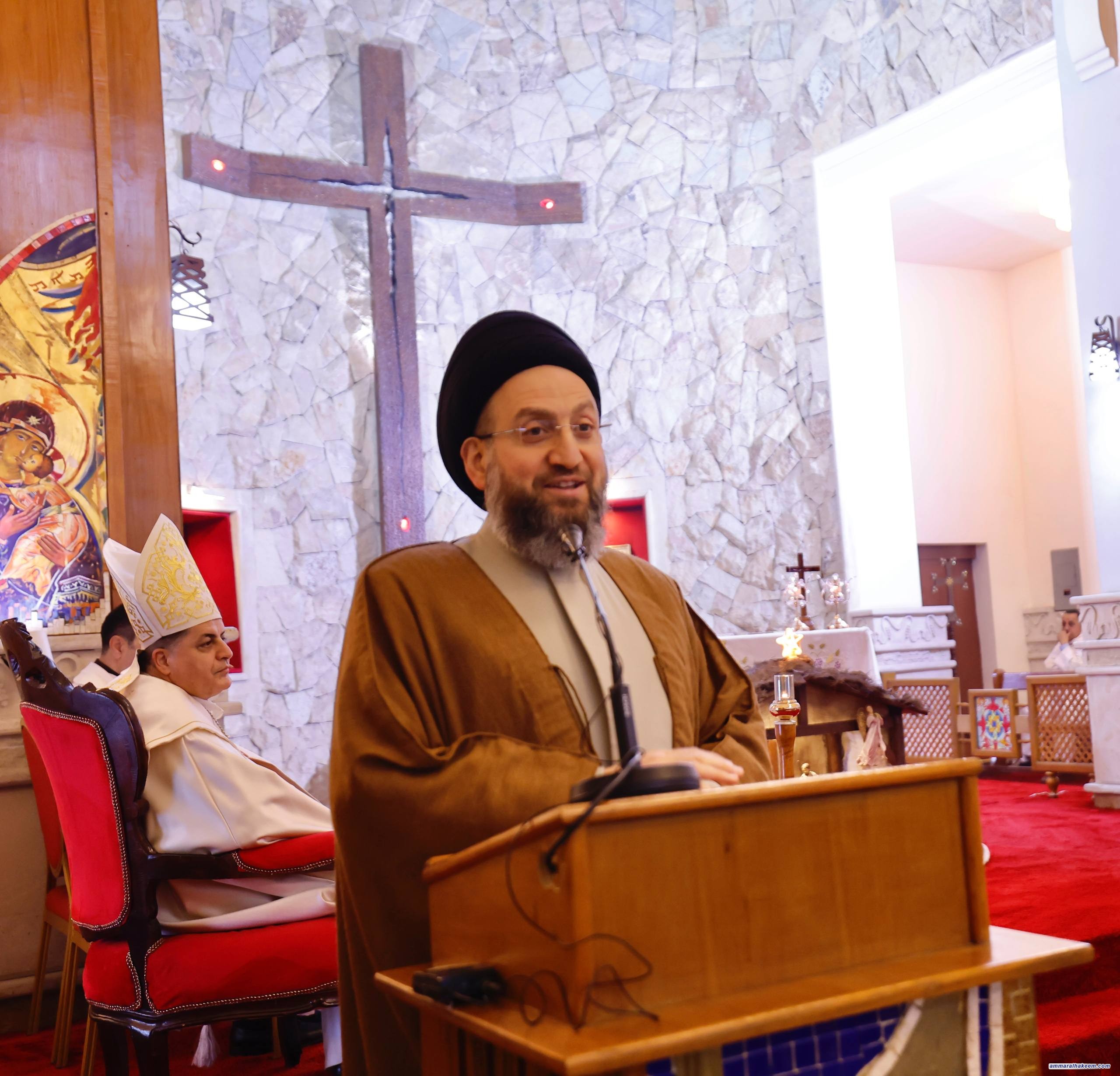 السيد الحكيم من كنيسة مار كوركيس يبارك عيد الميلاد ويؤكد أصالة المكوّن المسيحي في العراق