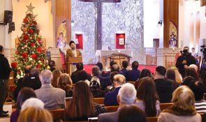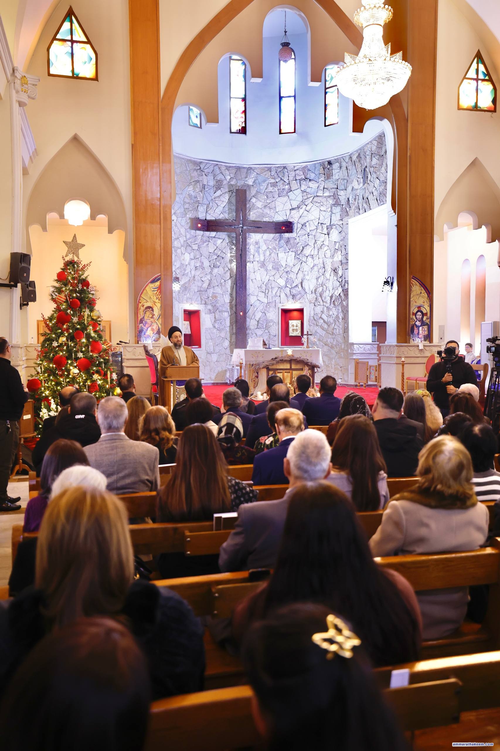 من كنيسة مار كوركيس للكلدان الكاثوليك في منطقة بغداد الجديدة، بارك سماحة السيد الحكيم، رئيس تحالف قوى الدولة الوطنية، صباح يوم الخميس 25 كانون الأول 2025، للإخوة المسيحيين في العراق والعالم بحلول عيد الميلاد المجيد، مؤكدًا أن ولادة السيد المسيح (عليه وعلى نبينا وأله السلام) تمثّل رسالة إنسانية جامعة لكل الديانات السماوية، وليست حكرًا على مكوّن أو أتباع ديانة بعينها.