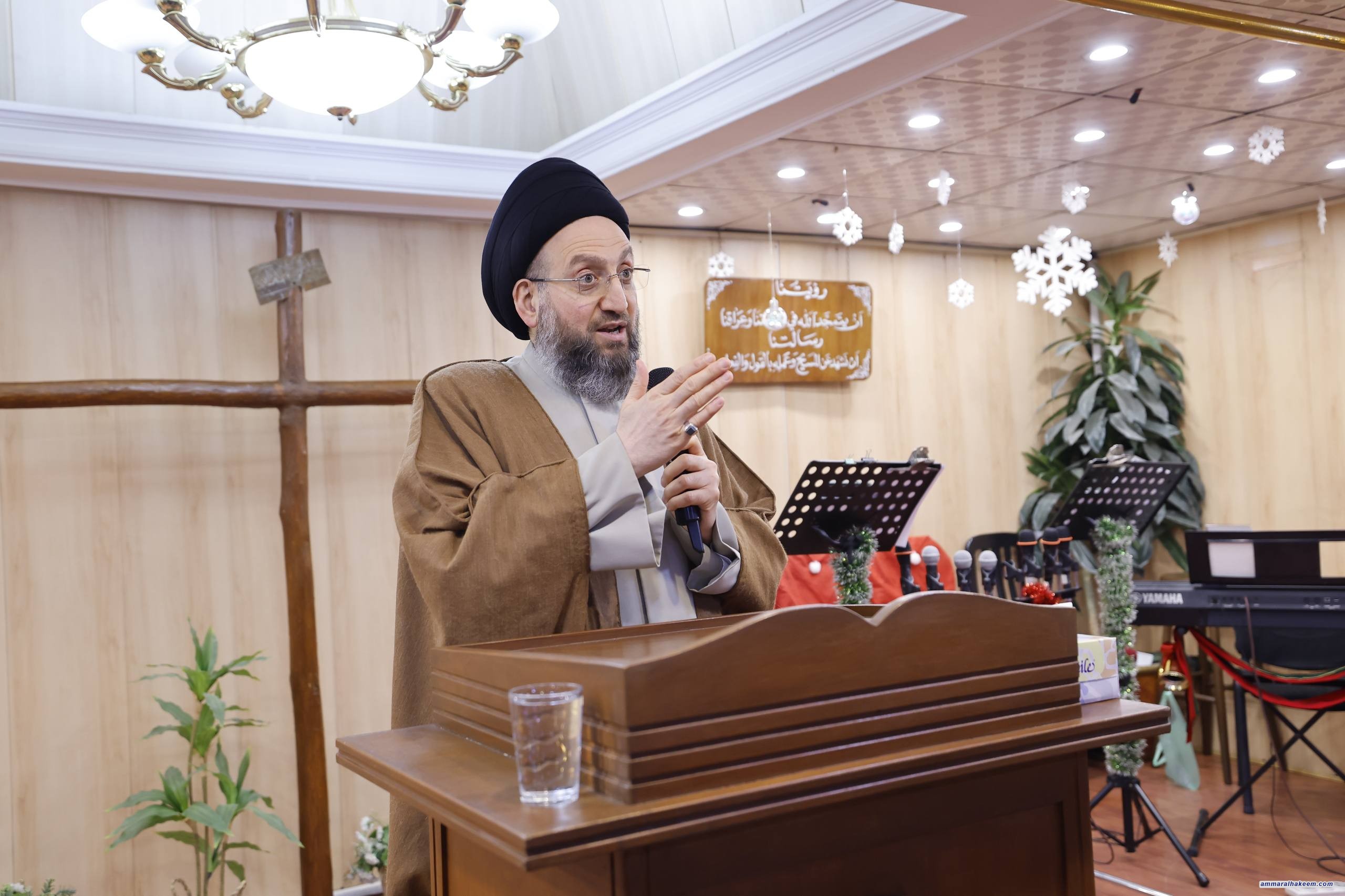 وأكد سماحته أهمية حضور قيم السيد المسيح (عليه السلام) في حياتنا اليومية، لما تمثله من دعوةٍ للمحبة والتسامح ونبذ التطرف، مشددًا على ترسيخ ثقافة التعايش السلمي ضمن خيمةِ العراق الجامعة، والدعوةِ إلى إطلاق رسالة المحبة والسلام بين جميع أبنائه.