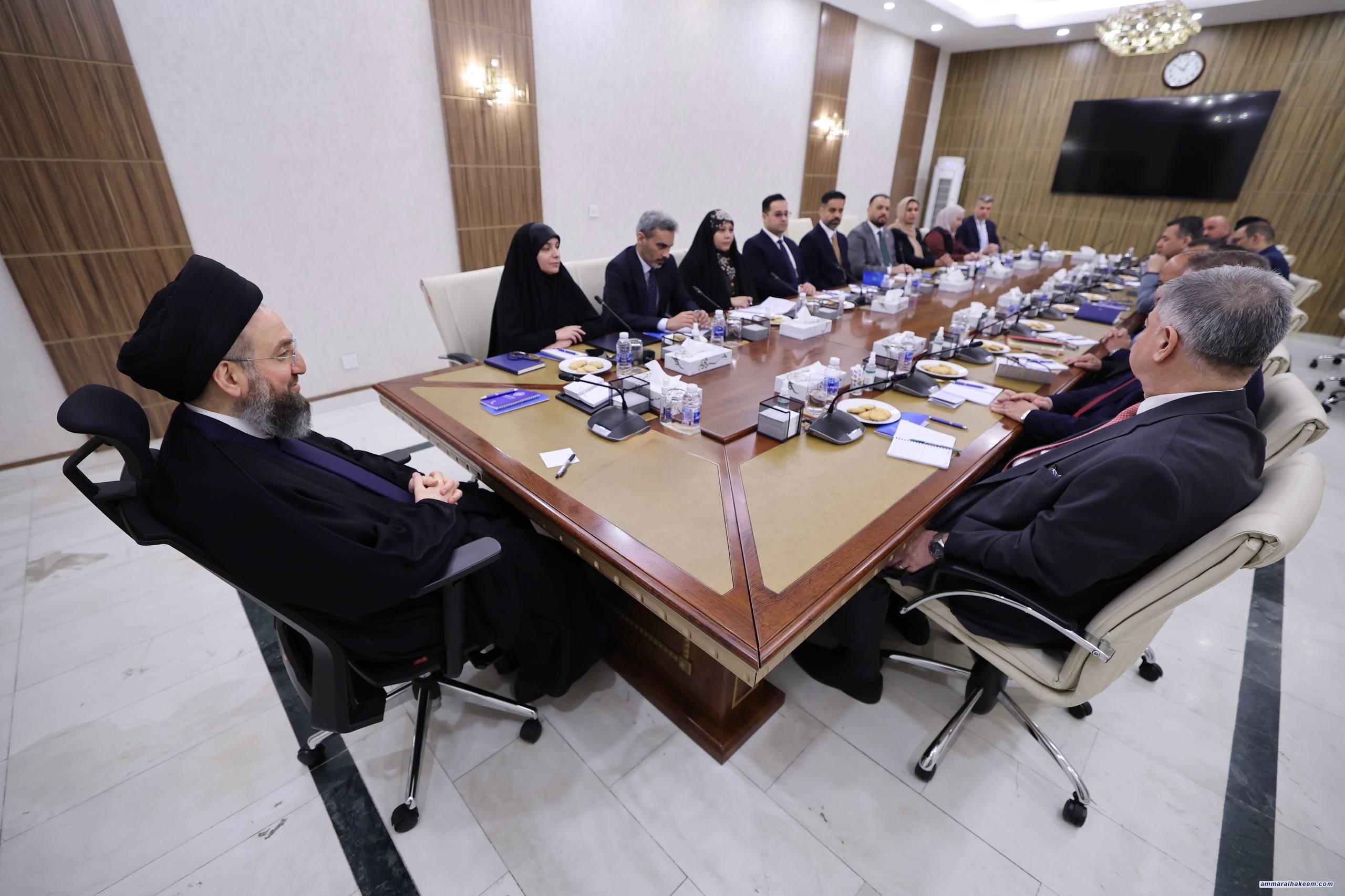أما على الصعيد الأكاديمي، فقد دعا السيد الحكيم إلى تكثيف جهود البحث العلمي وربطه بالاحتياجات الفعلية والمشكلات التي يعانيها المجتمع، بحيث يُقدّم رؤى وحلولاً ملموسة. وشدّد على أهمية التواصل المستمر بين المؤسسات الأكاديمية والحكومات المحلية ومؤسسات الدولة، بما يُسهم في معالجة إشكاليات الجهاز التنفيذي.
